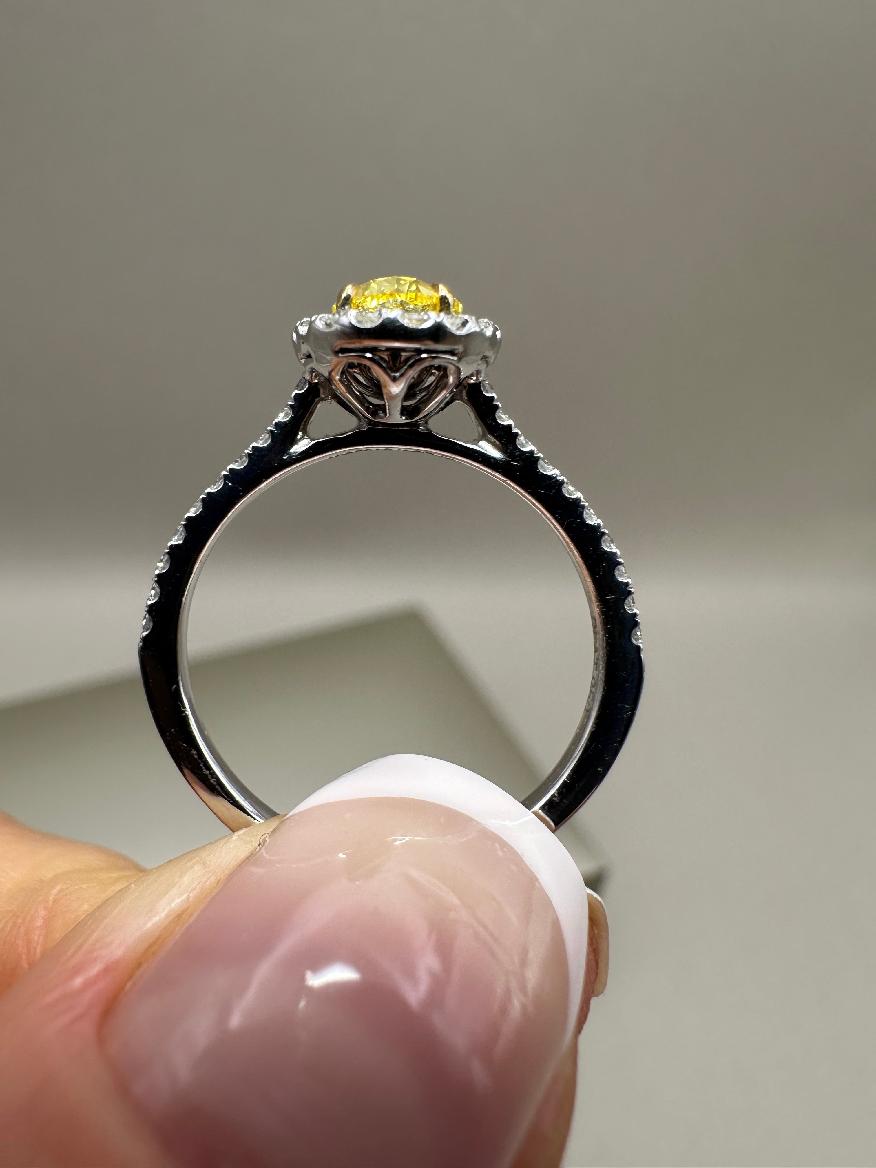 Platinum Gold Oval Yellow Diamond Halo Ring – 1.27ct Lab-Grown Diamonds