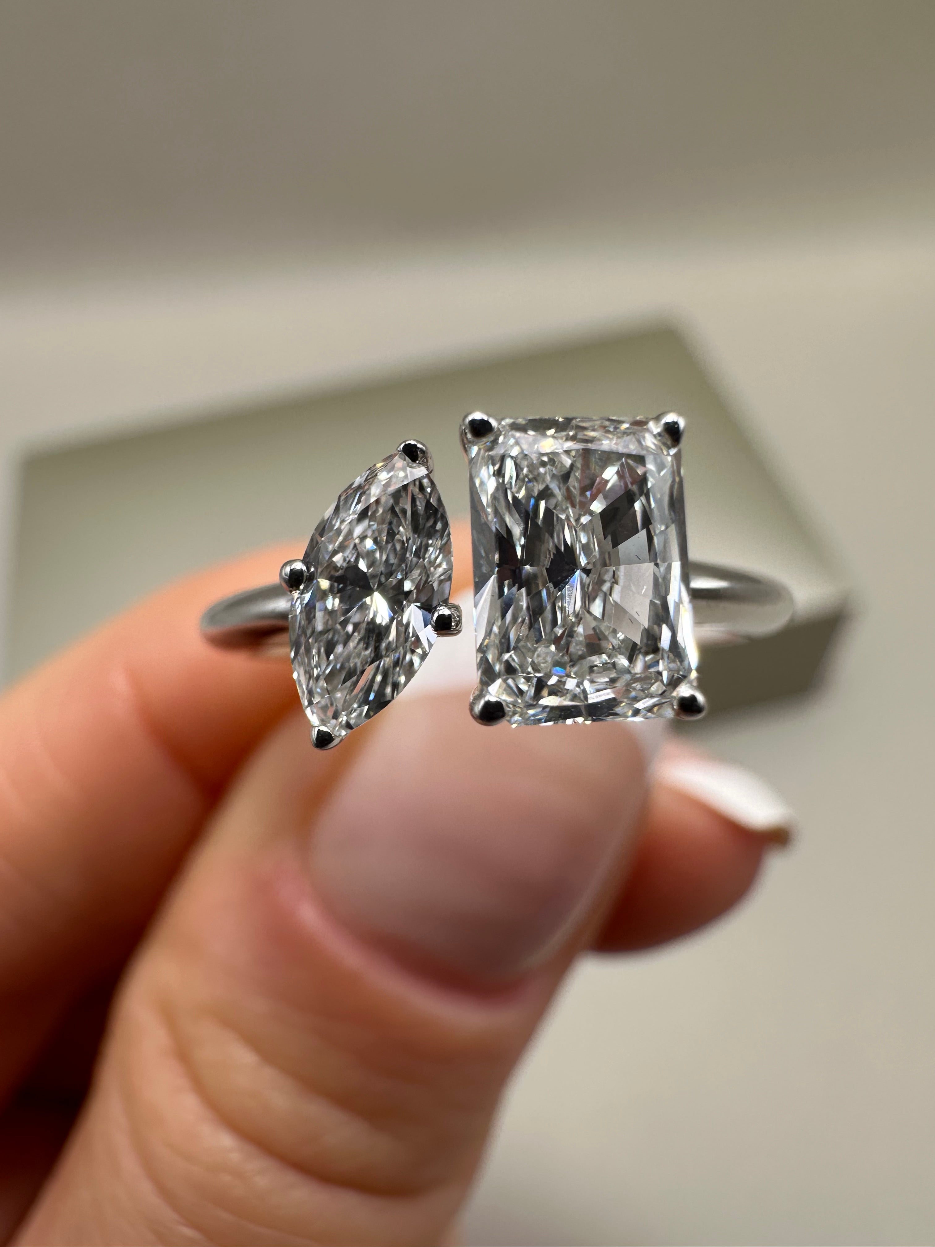 18ct White Gold Toi et Moi Ring – 1.30ct Lab-Grown Radiant & Marquise Diamonds | Elegant Fancy Design