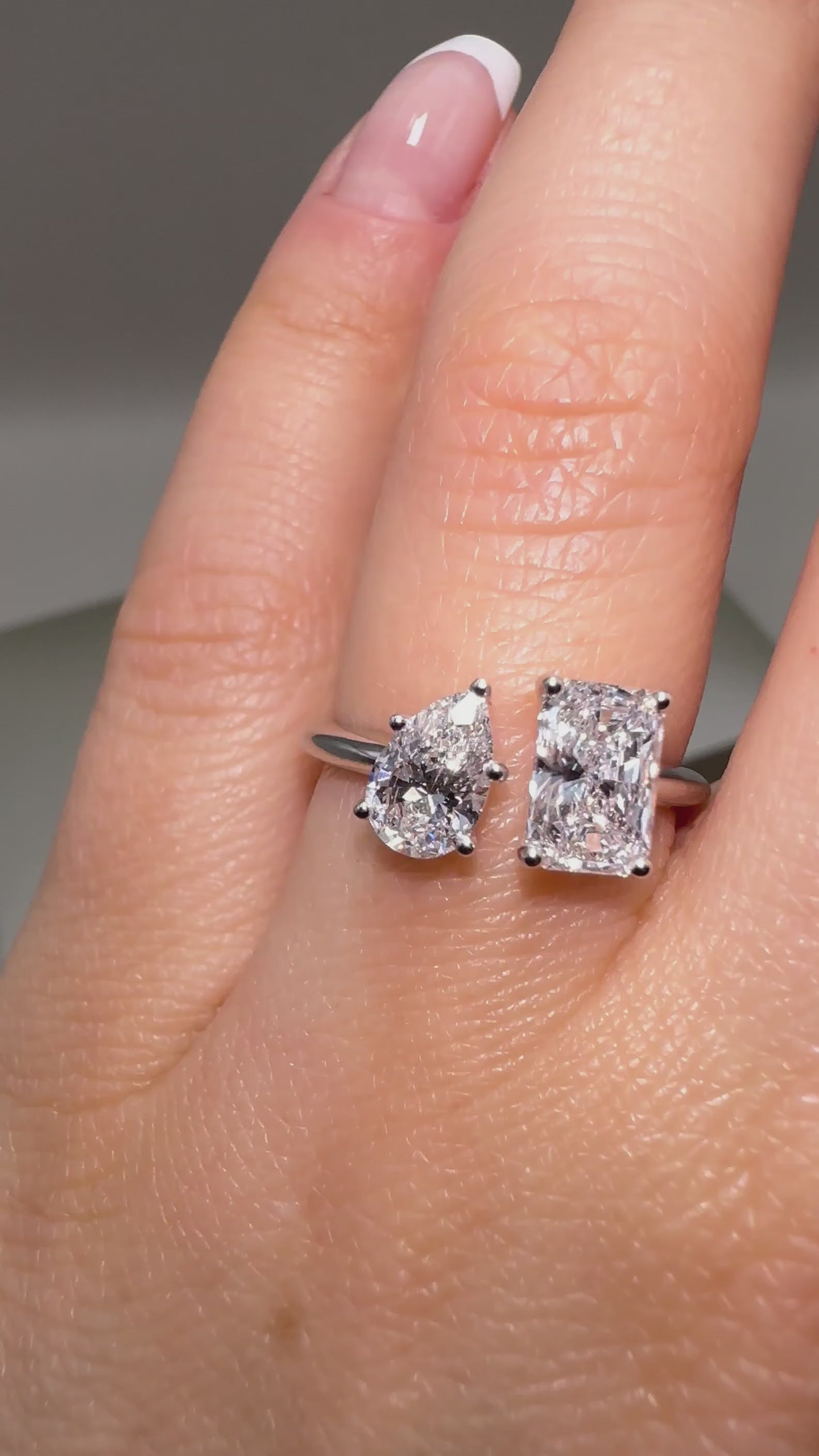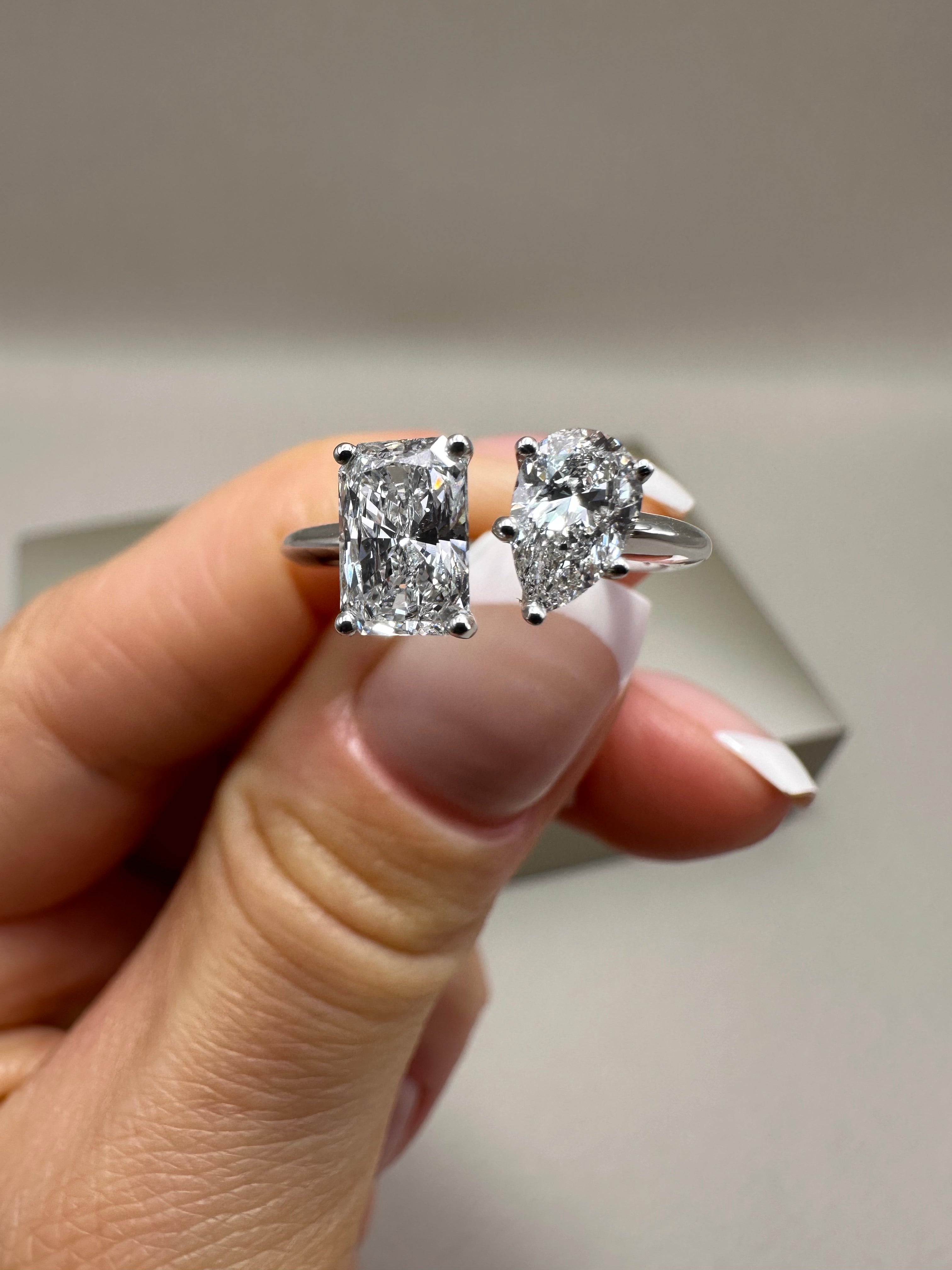 18ct White Gold Toi et Moi Ring – 1.44ct Lab-Grown Radiant & Pear Diamonds | Elegant Fancy Design