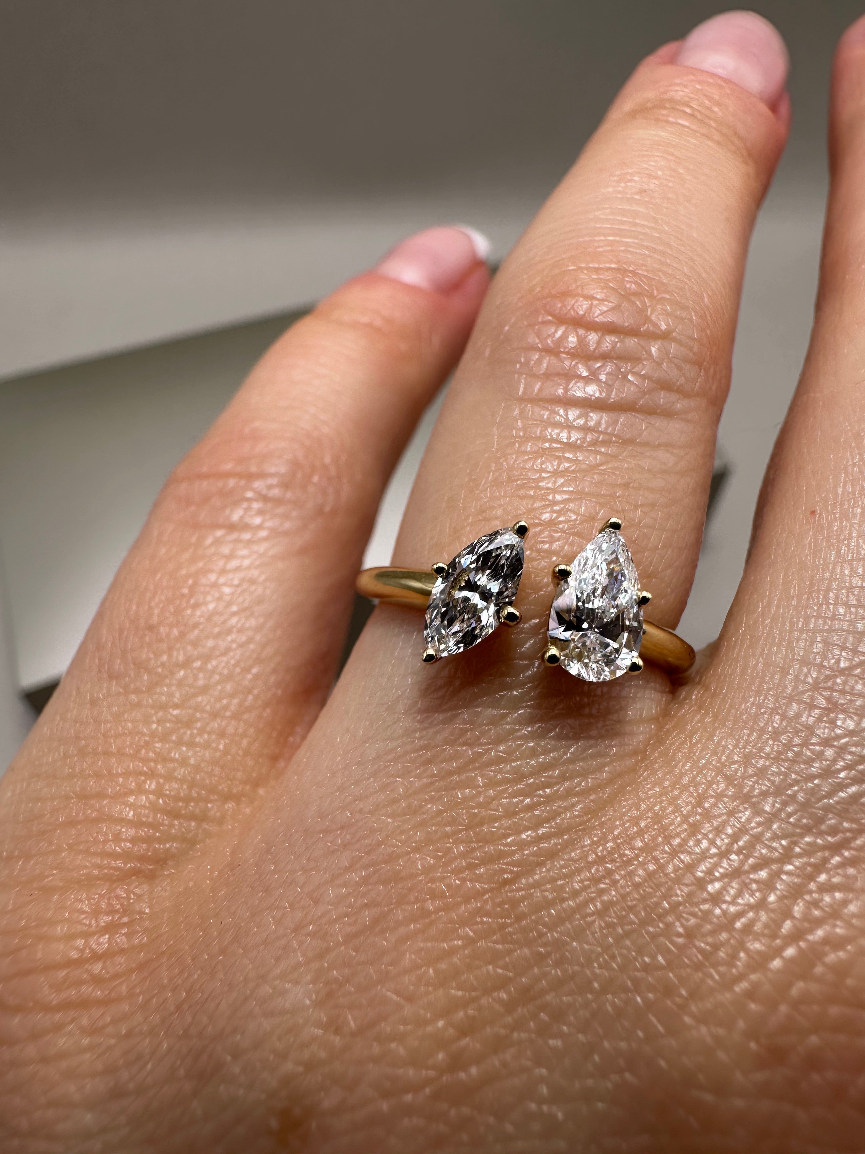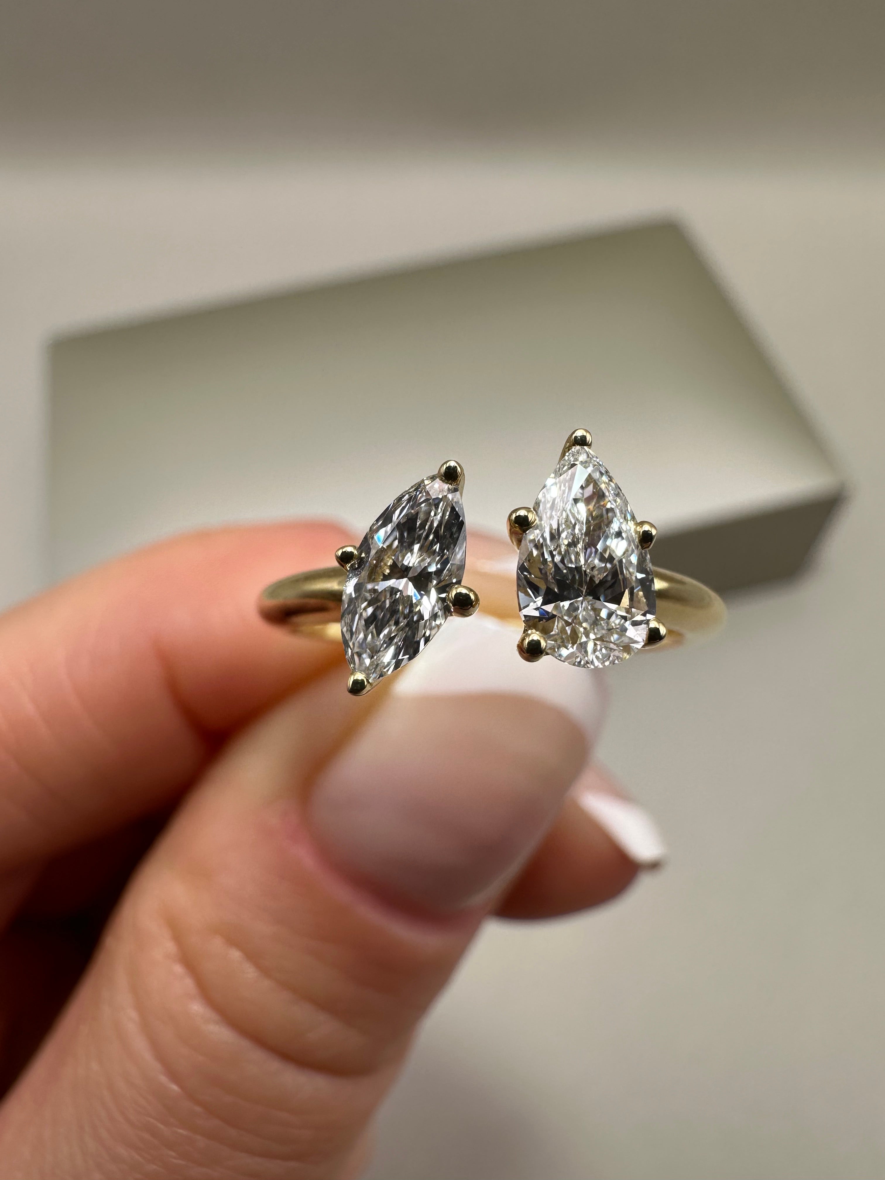 18ct Yellow Gold Toi et Moi Ring – 0.82ct Lab-Grown Pear & Marquise Diamonds | Elegant Fancy Design