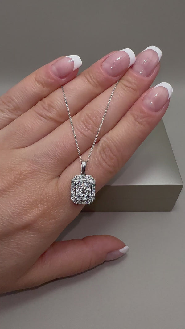 9ct White Gold Halo Diamond Pendant with Chain | 1.04ct Lab-Grown Diamonds