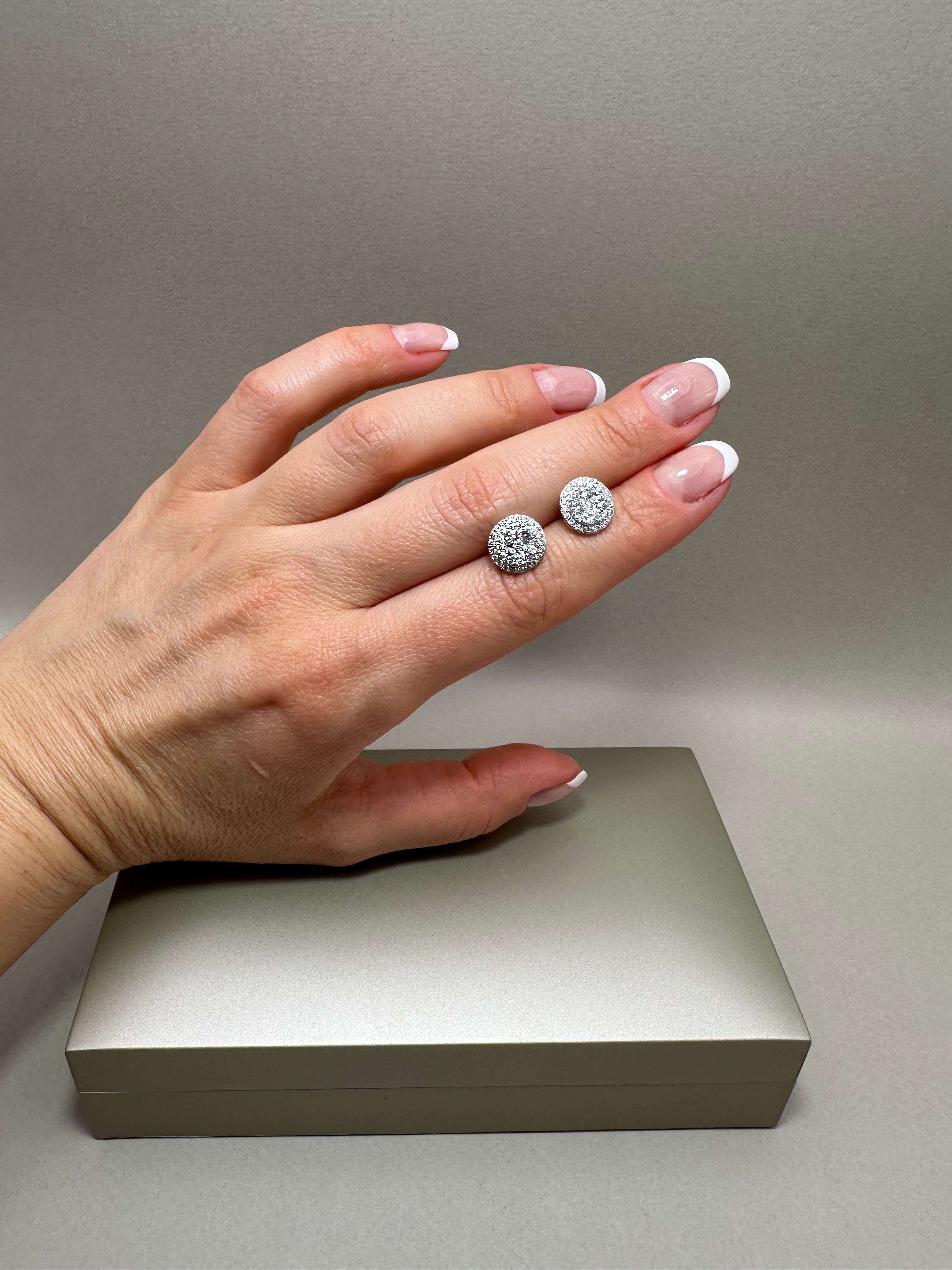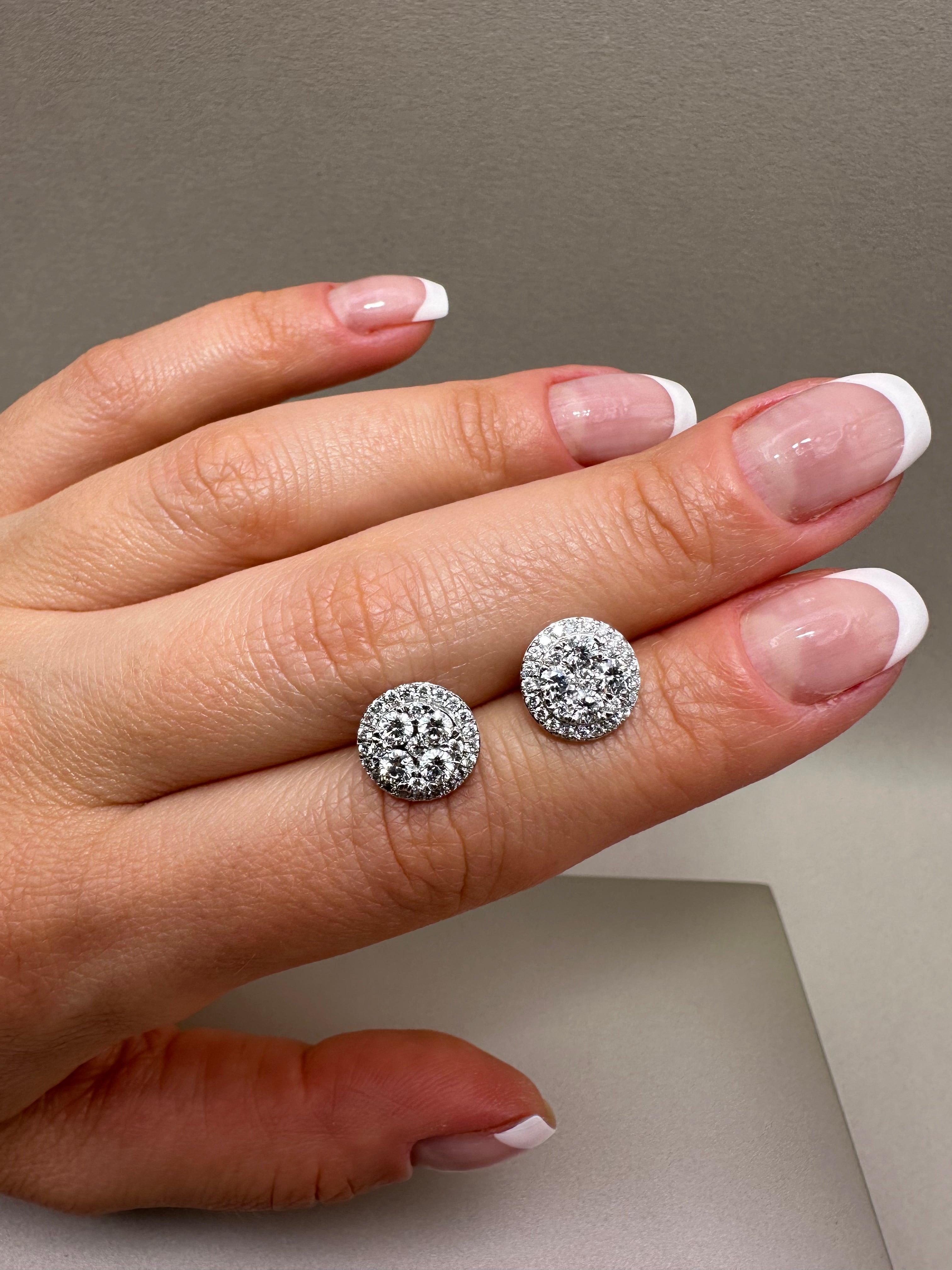 9ct White Gold Halo Stud Earrings | 1.01ct Lab-Grown Diamonds, Illusion Setting