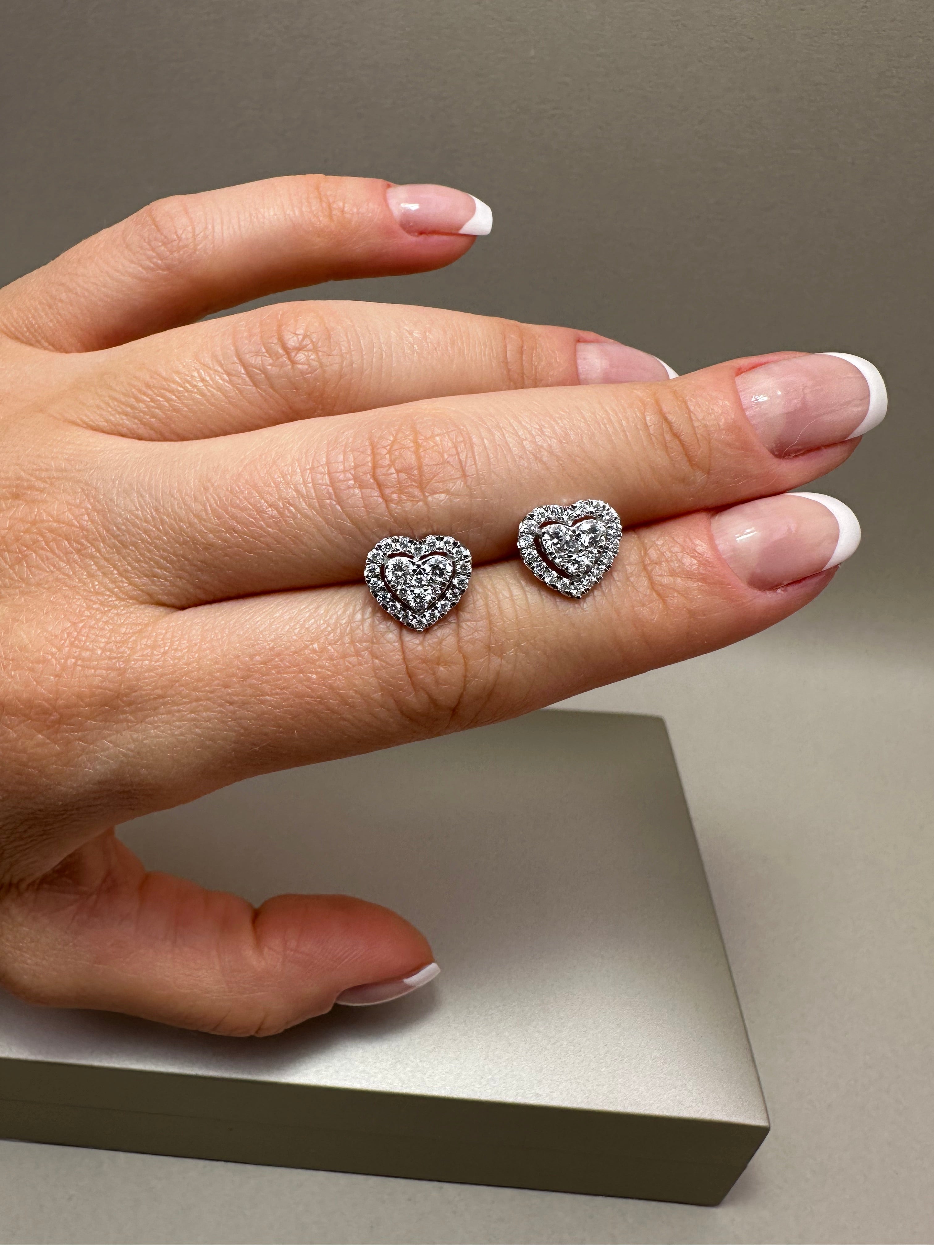 9ct White Gold Heart Halo Diamond Stud Earrings | 0.75ct Lab-Grown Diamonds
