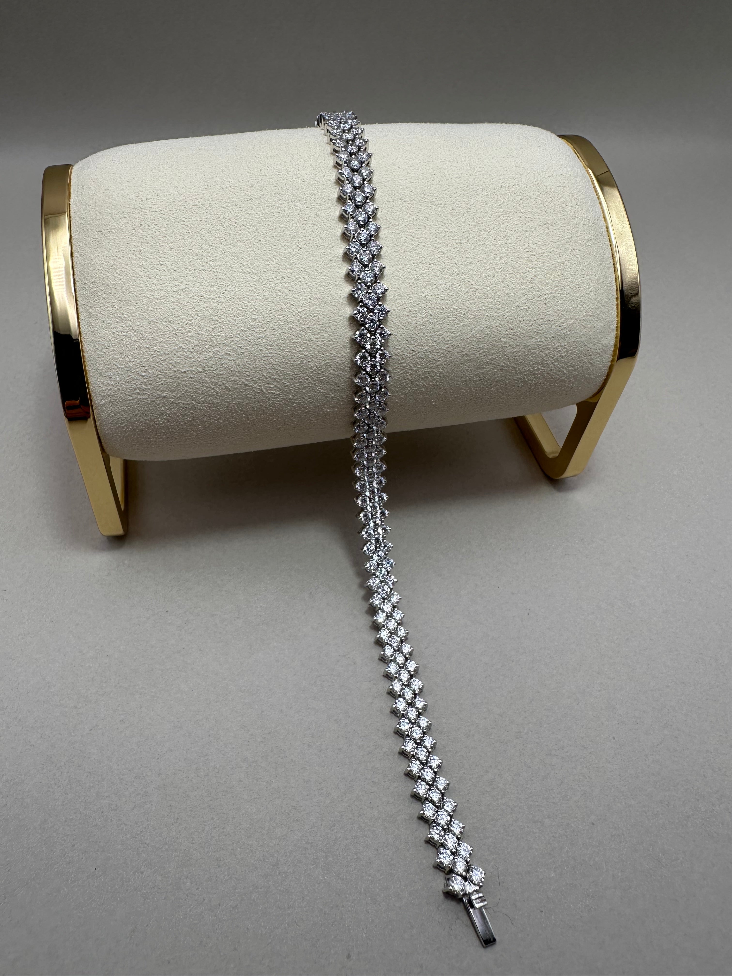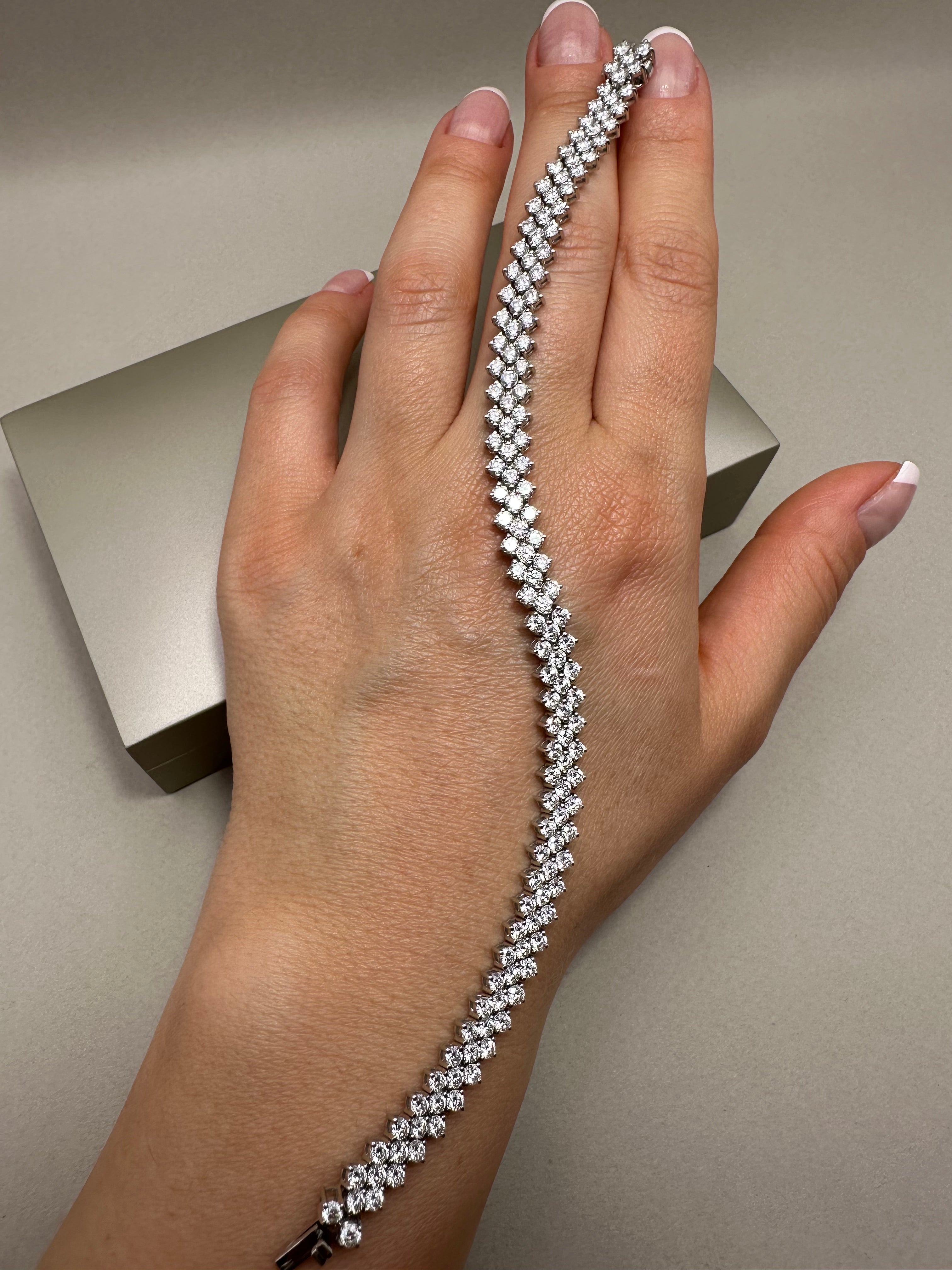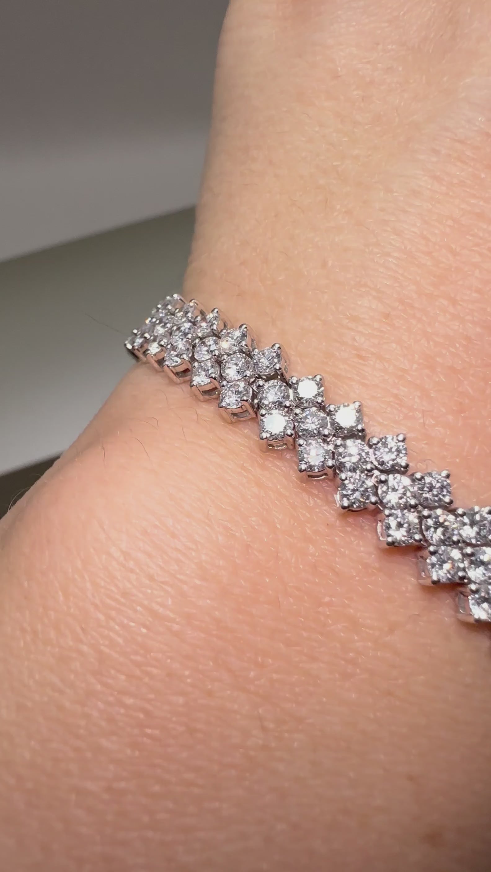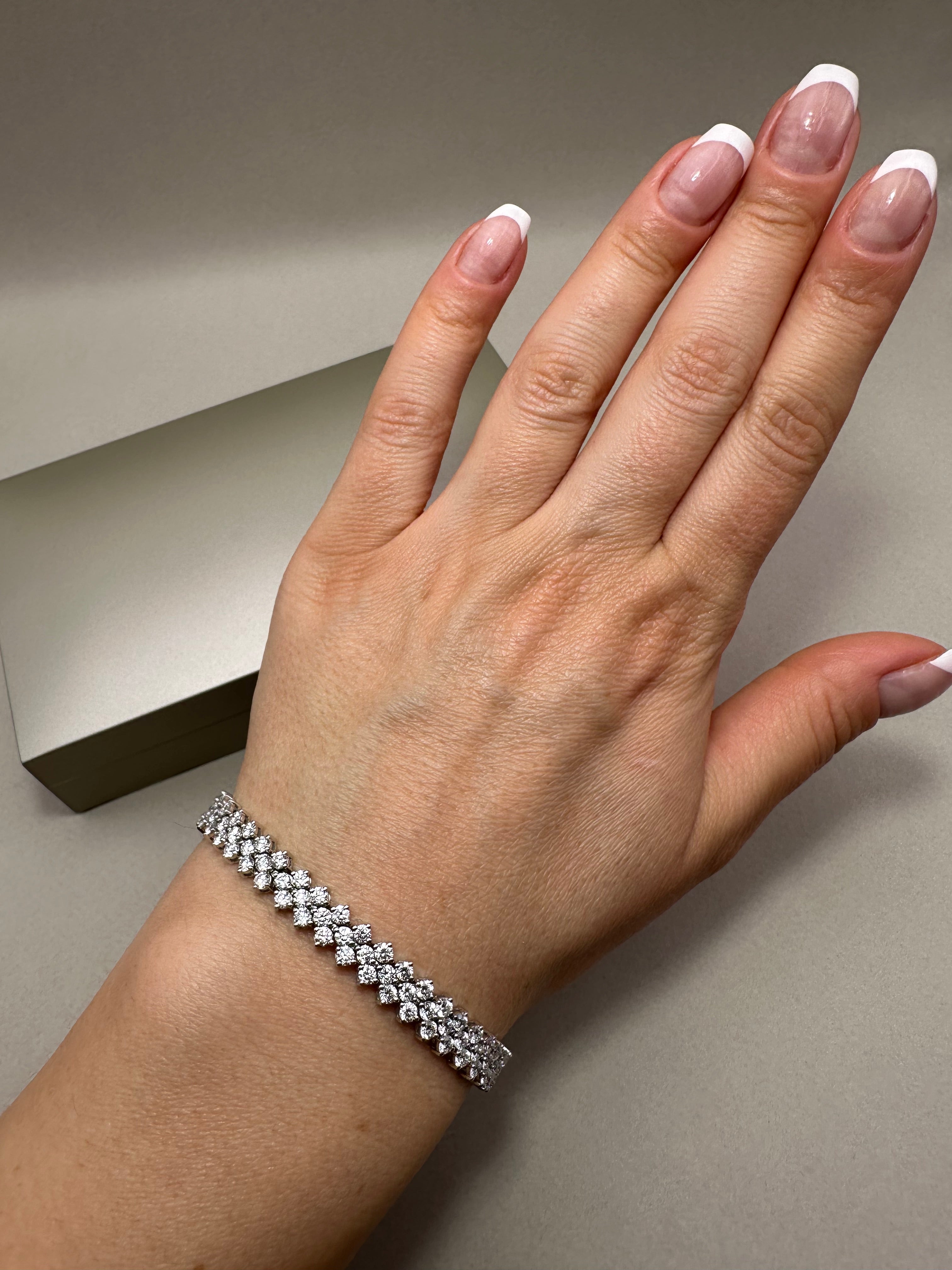 9ct White Gold Lab-Grown Diamond 3-Row Fancy Tennis Bracelet – 8.21ct Brilliant Cut | Luxury Fine Jewellery