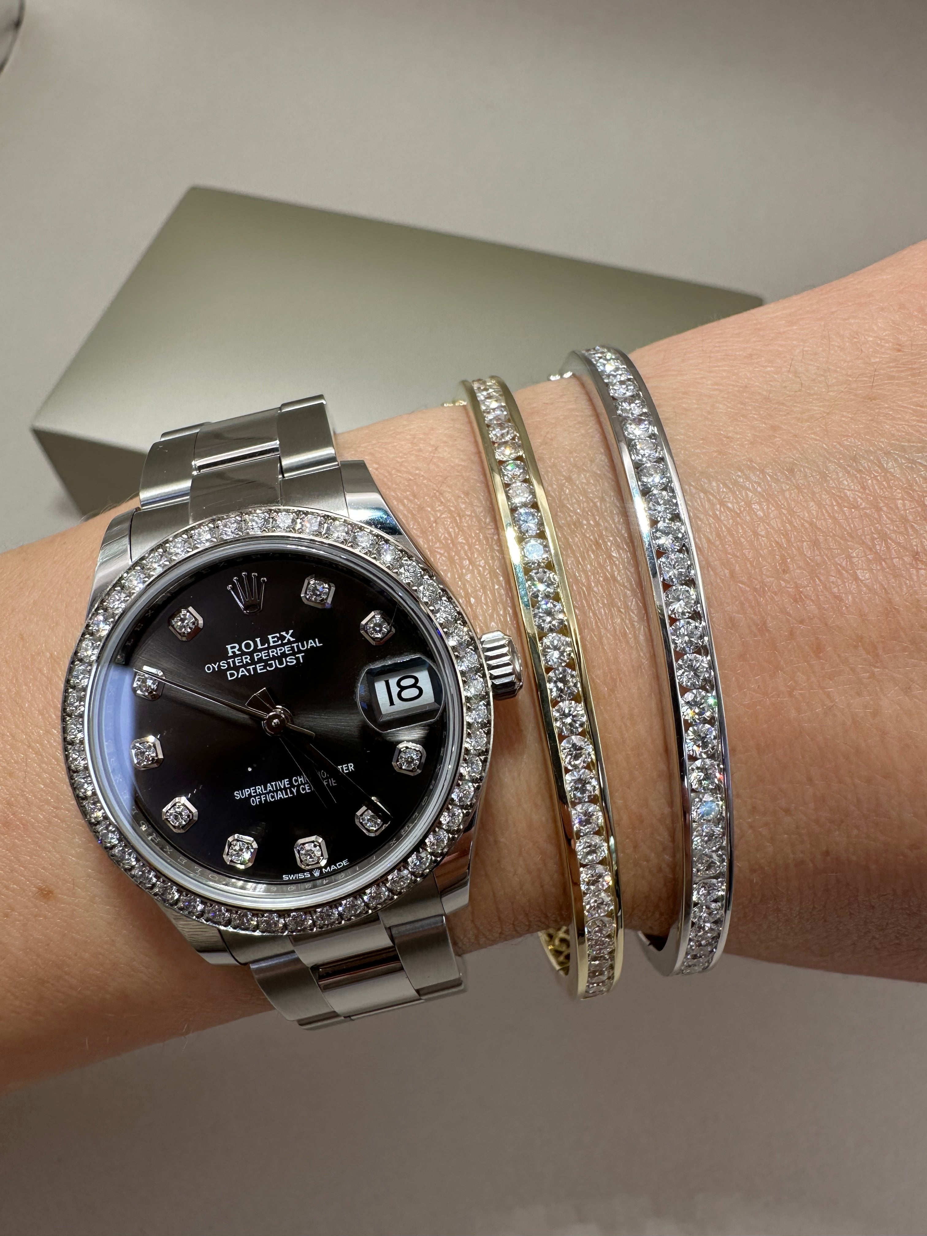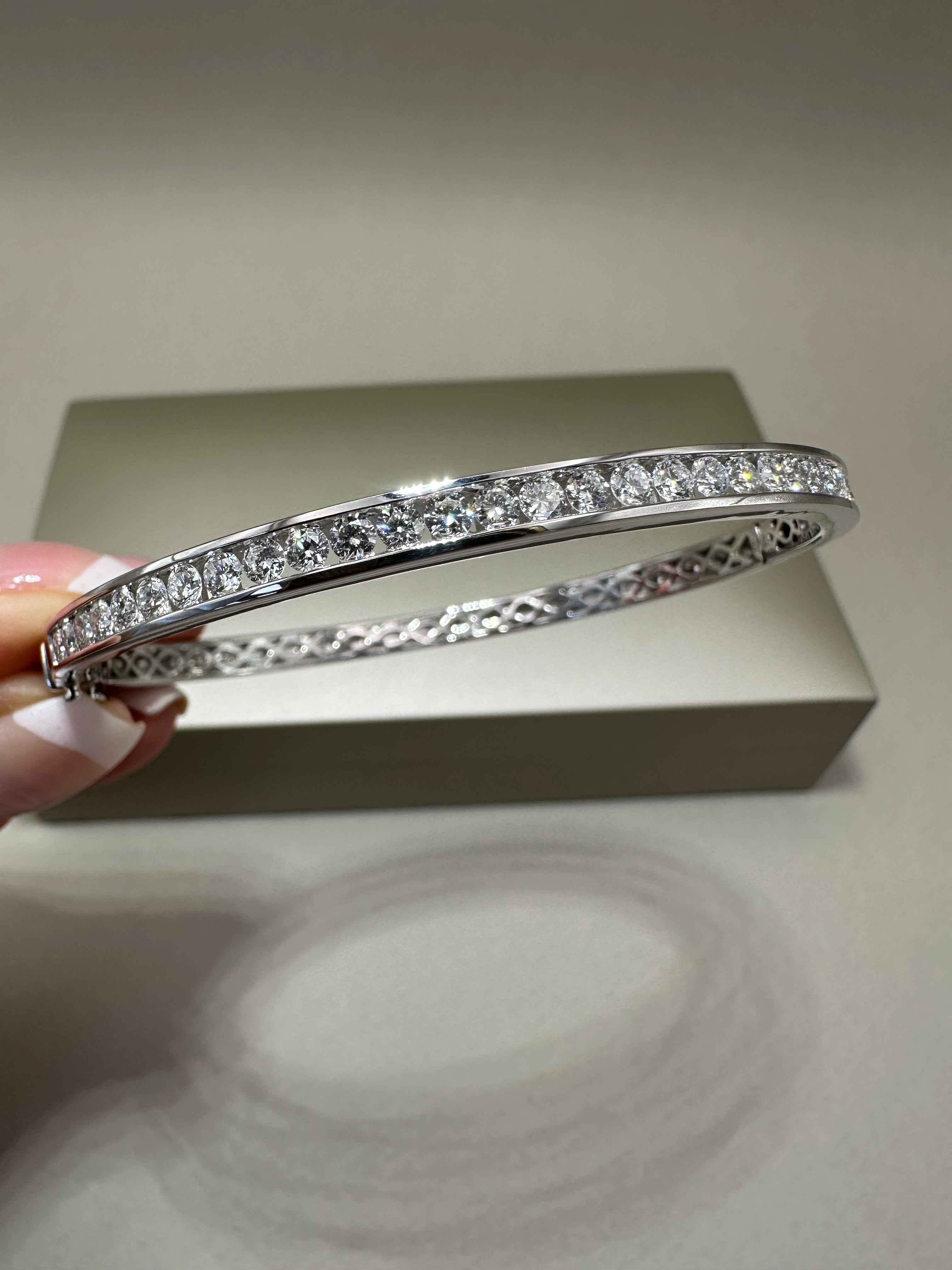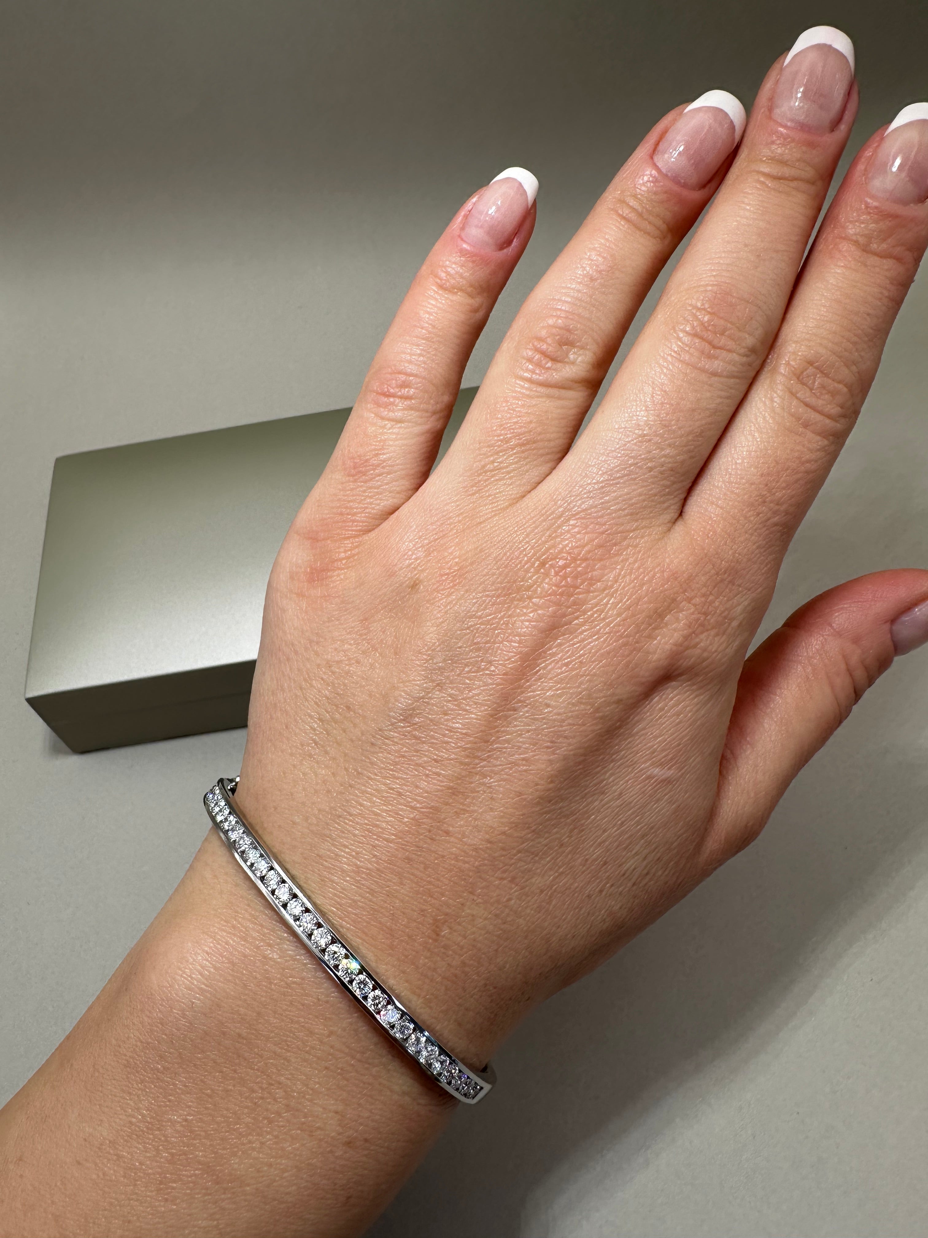 9ct White Gold Lab-Grown Diamond Channel Set Bangle | 1.95ct Round Diamonds