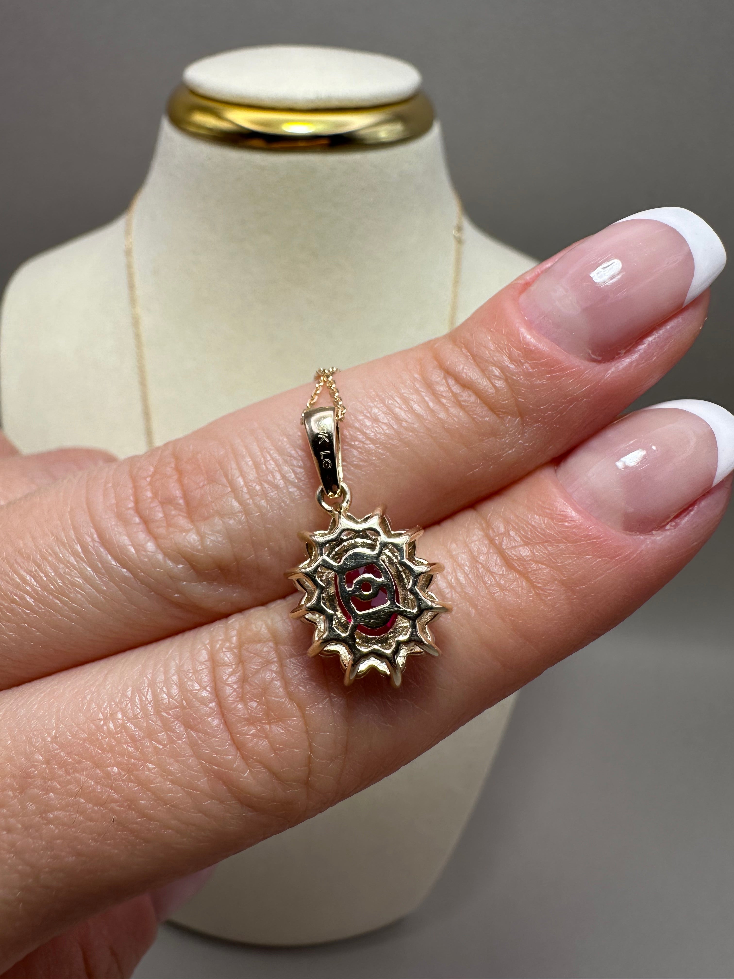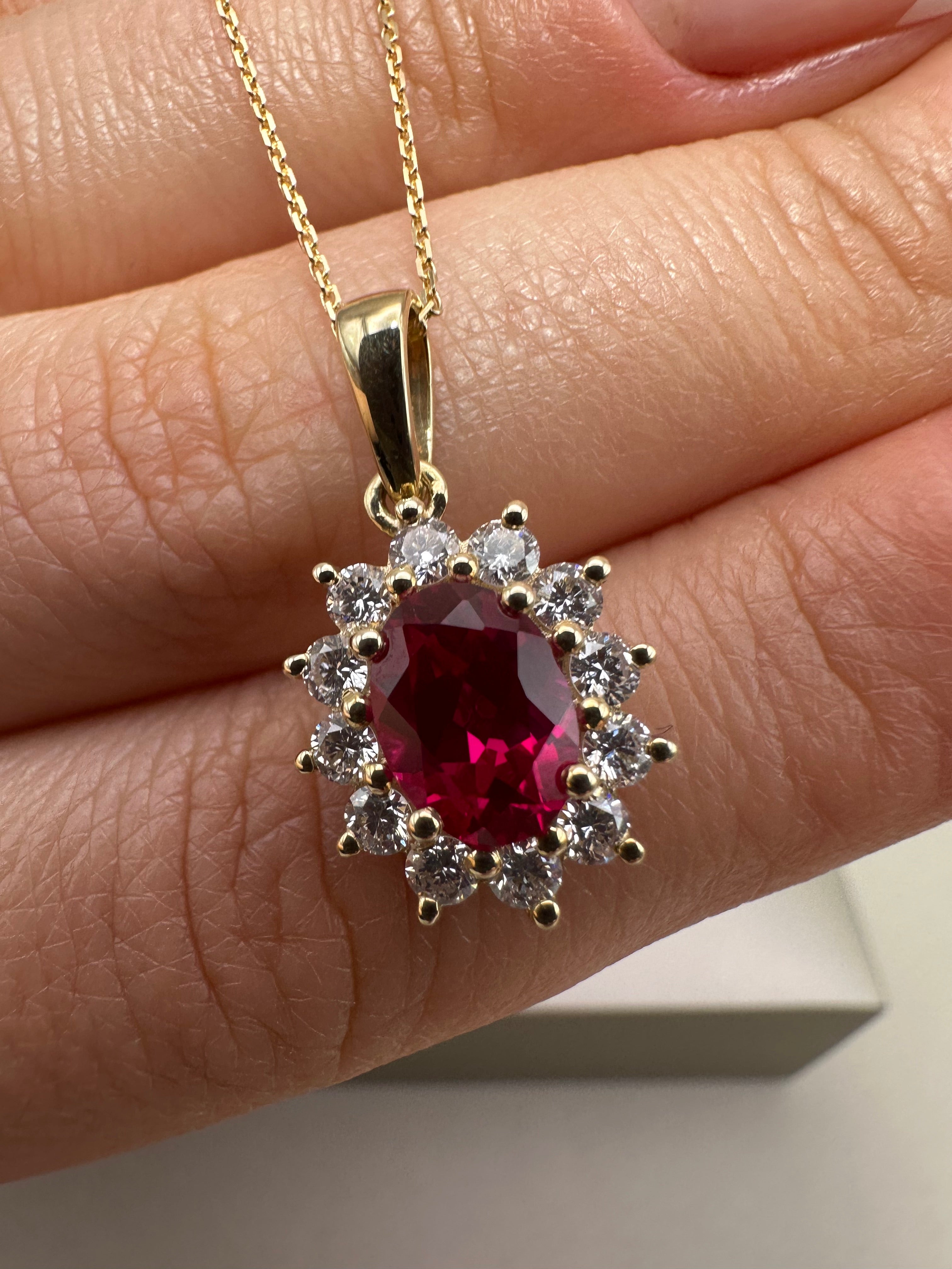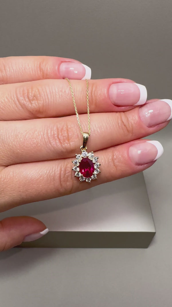 9ct Yellow Gold Cluster Pendant with Lab-Grown Diamonds & Oval Ruby | 1.98ct Total