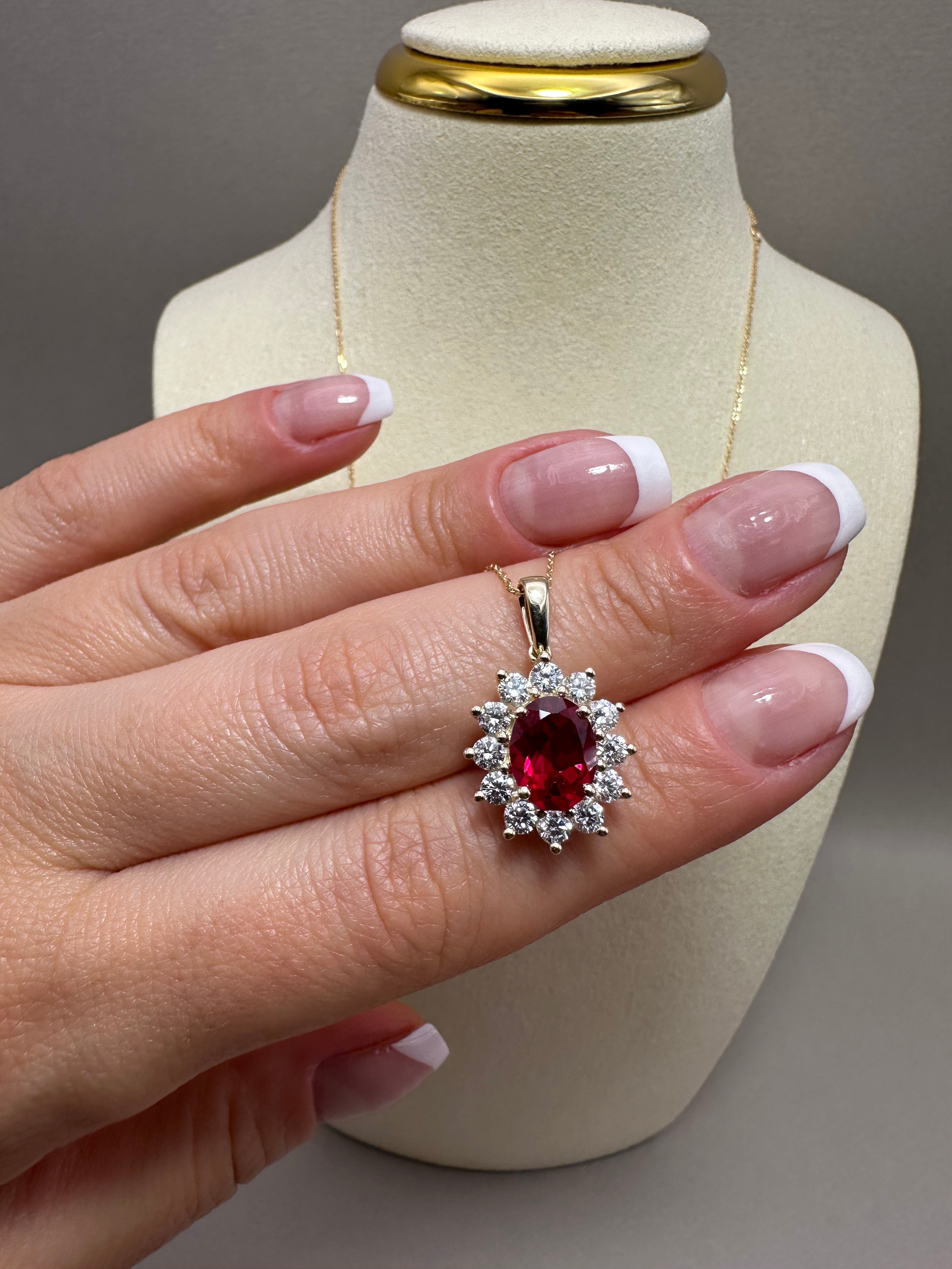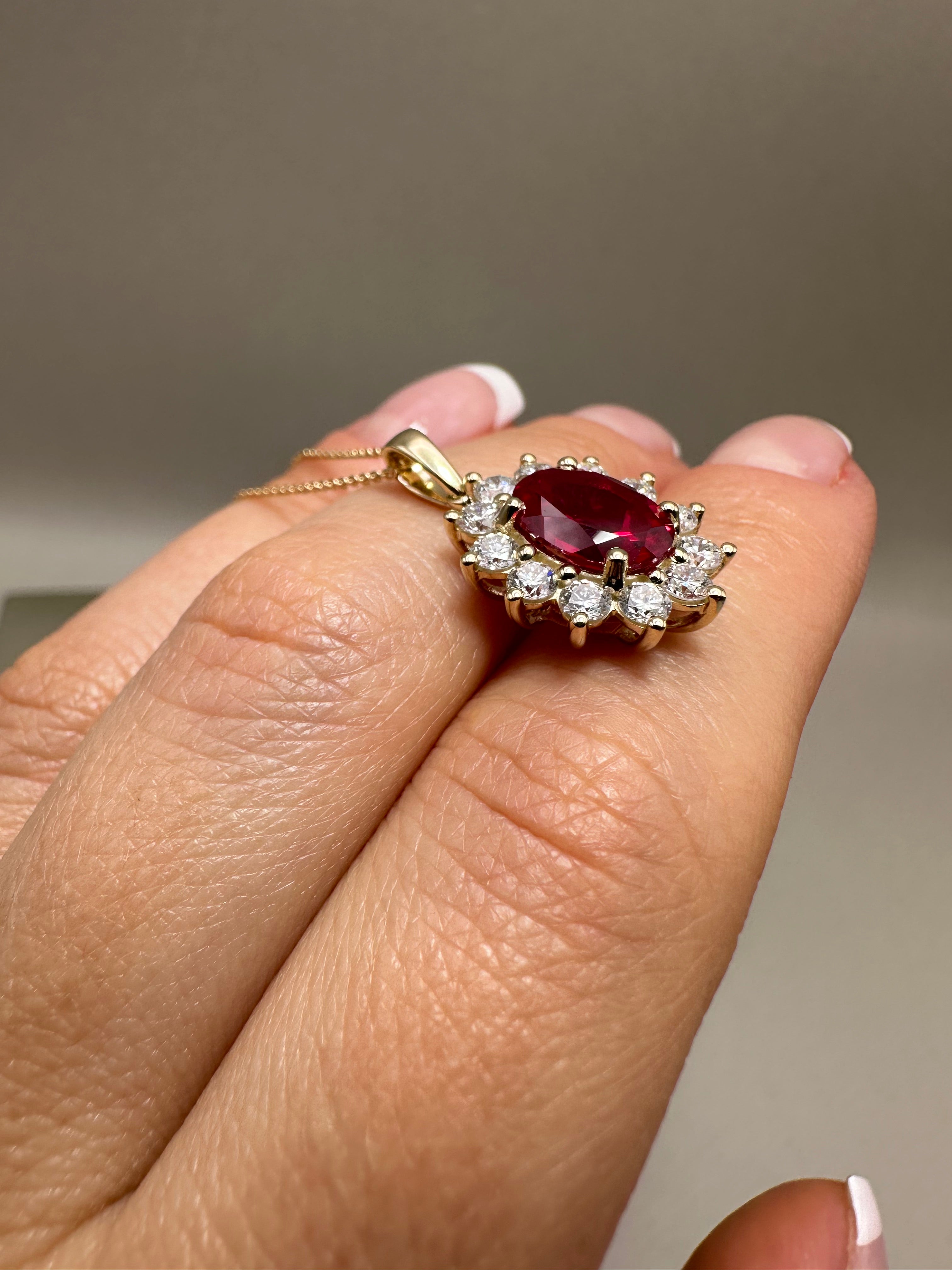9ct Yellow Gold Cluster Pendant with Lab-Grown Diamonds & Oval Ruby | 3.25ct Total
