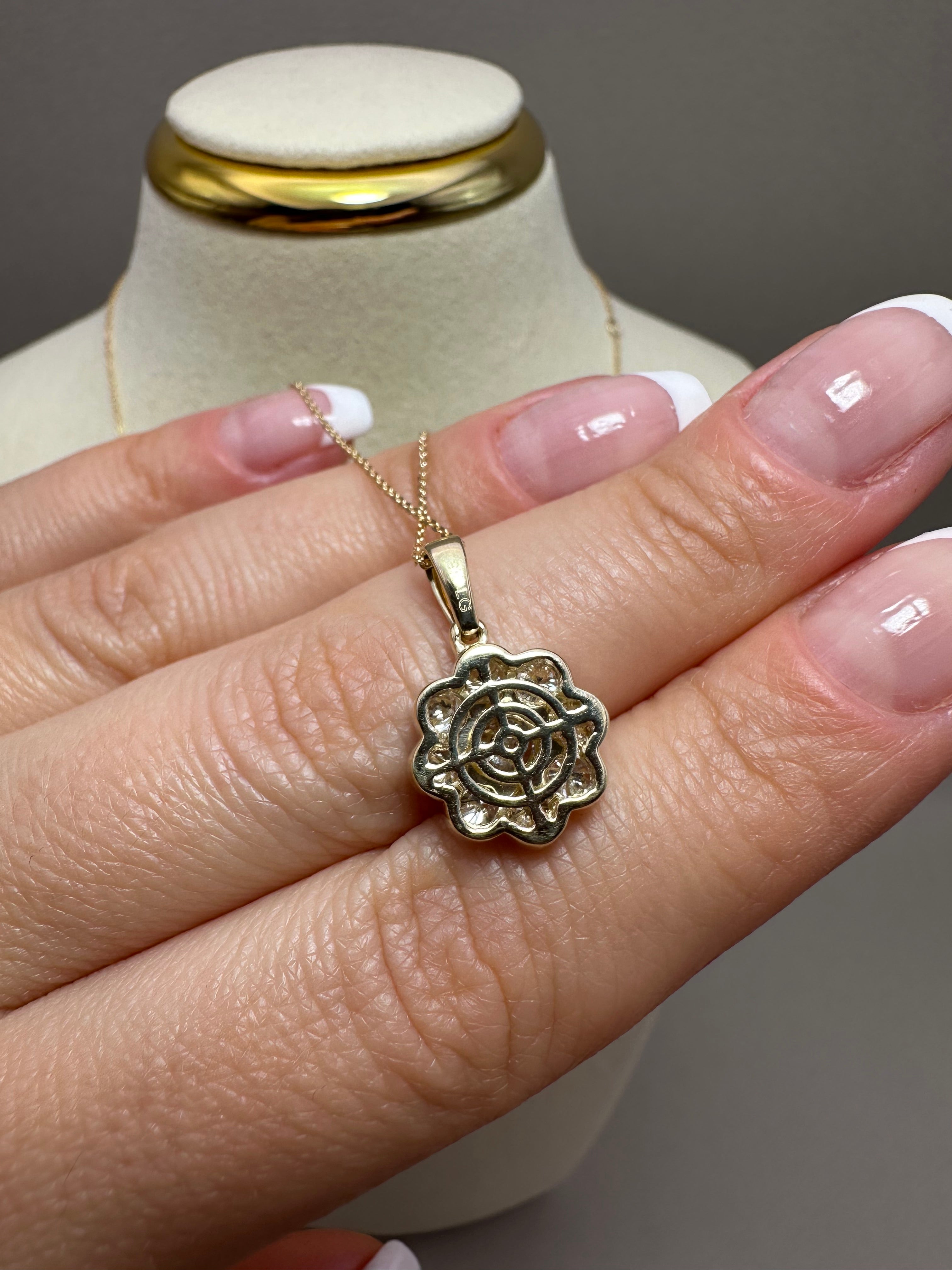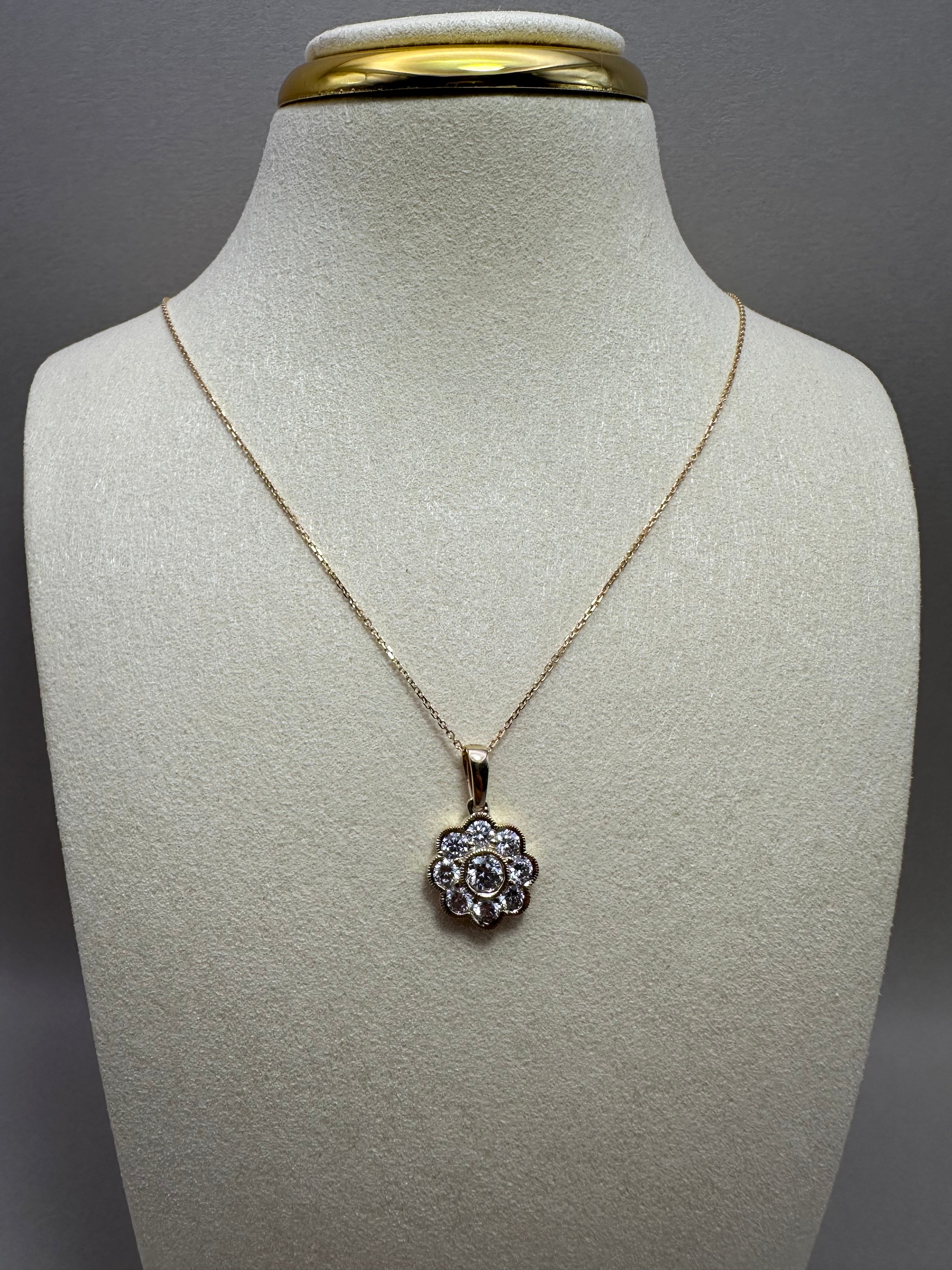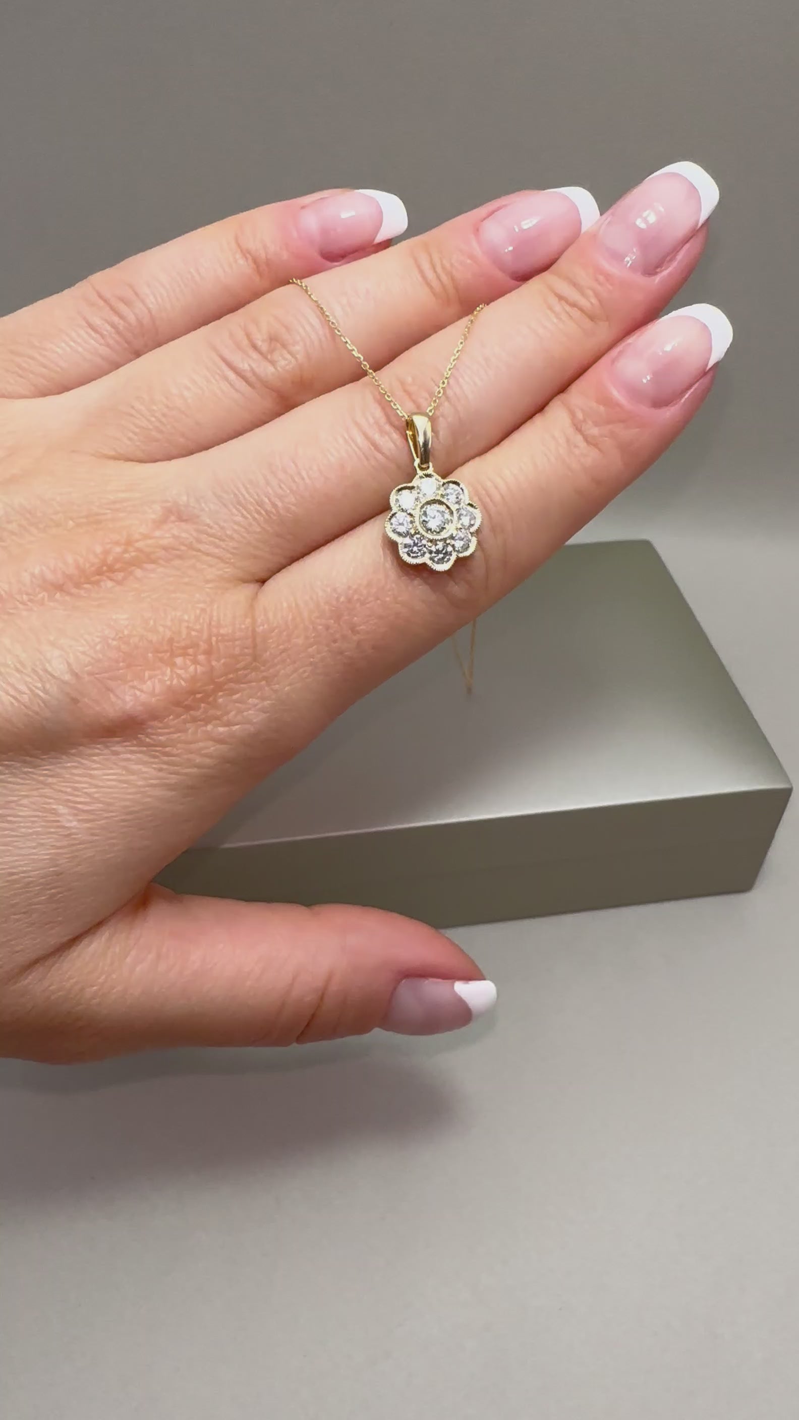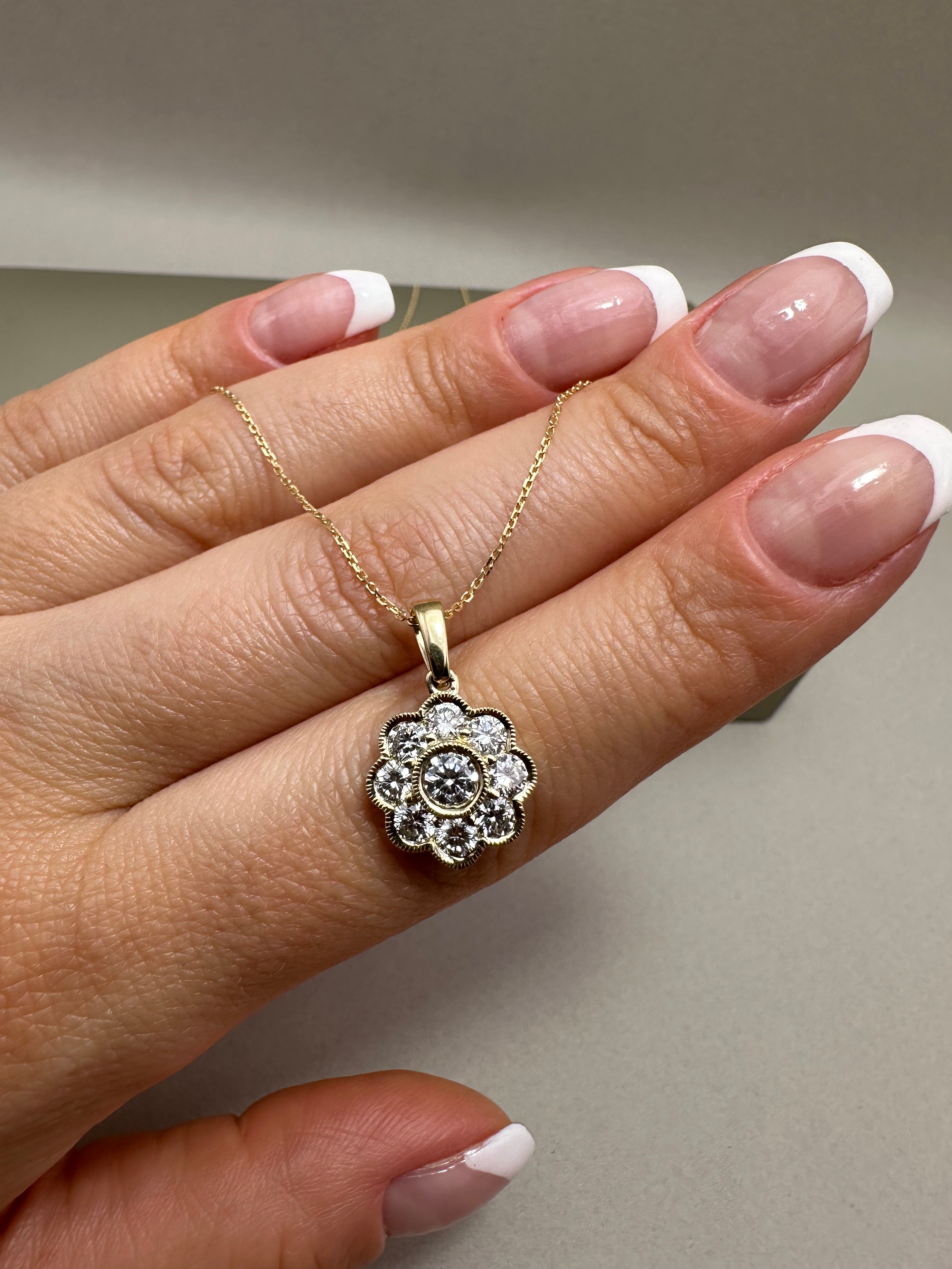 9ct Yellow Gold Daisy Cluster Diamond Pendant with Chain | 1.03ct Lab-Grown Diamonds