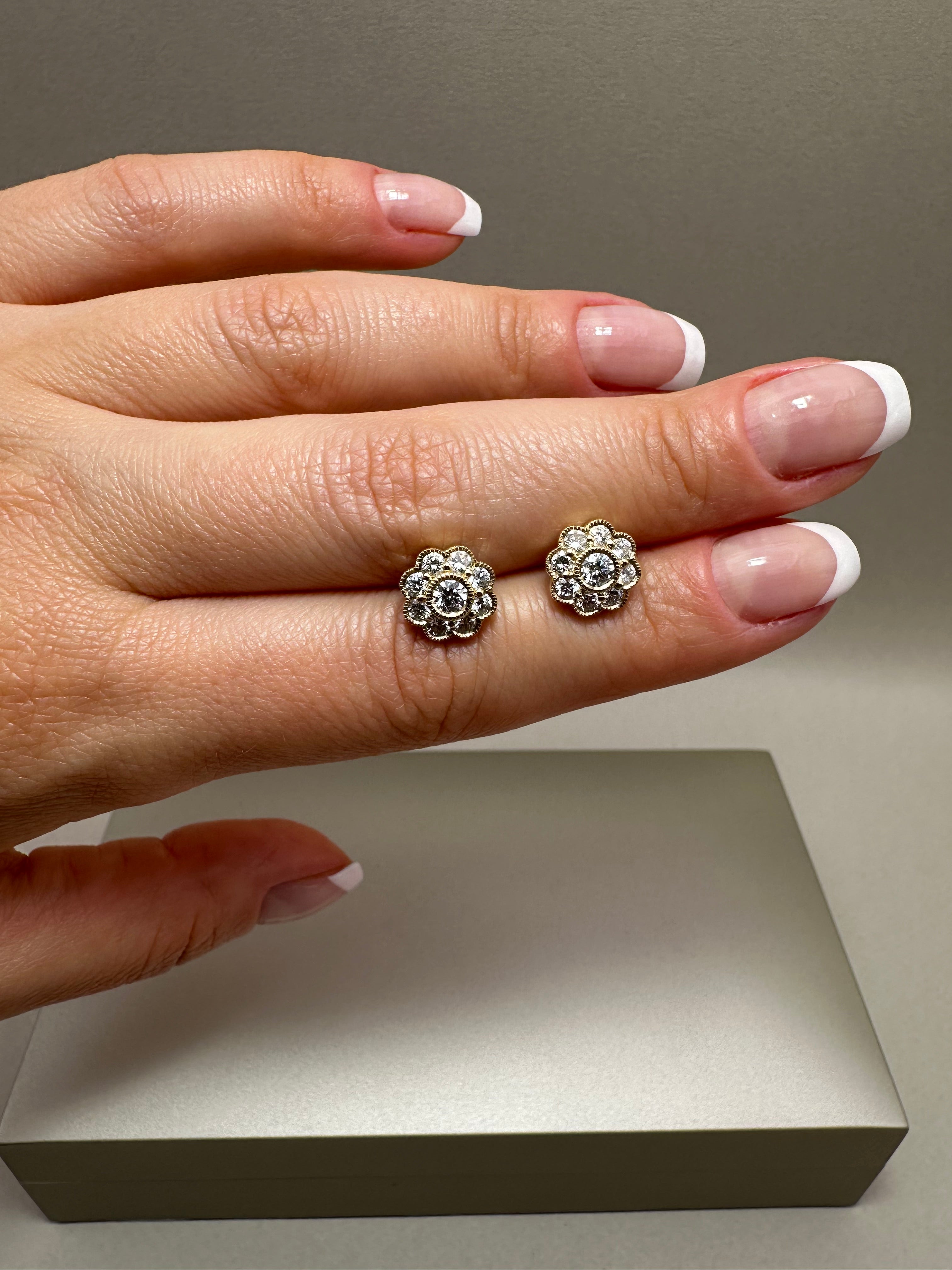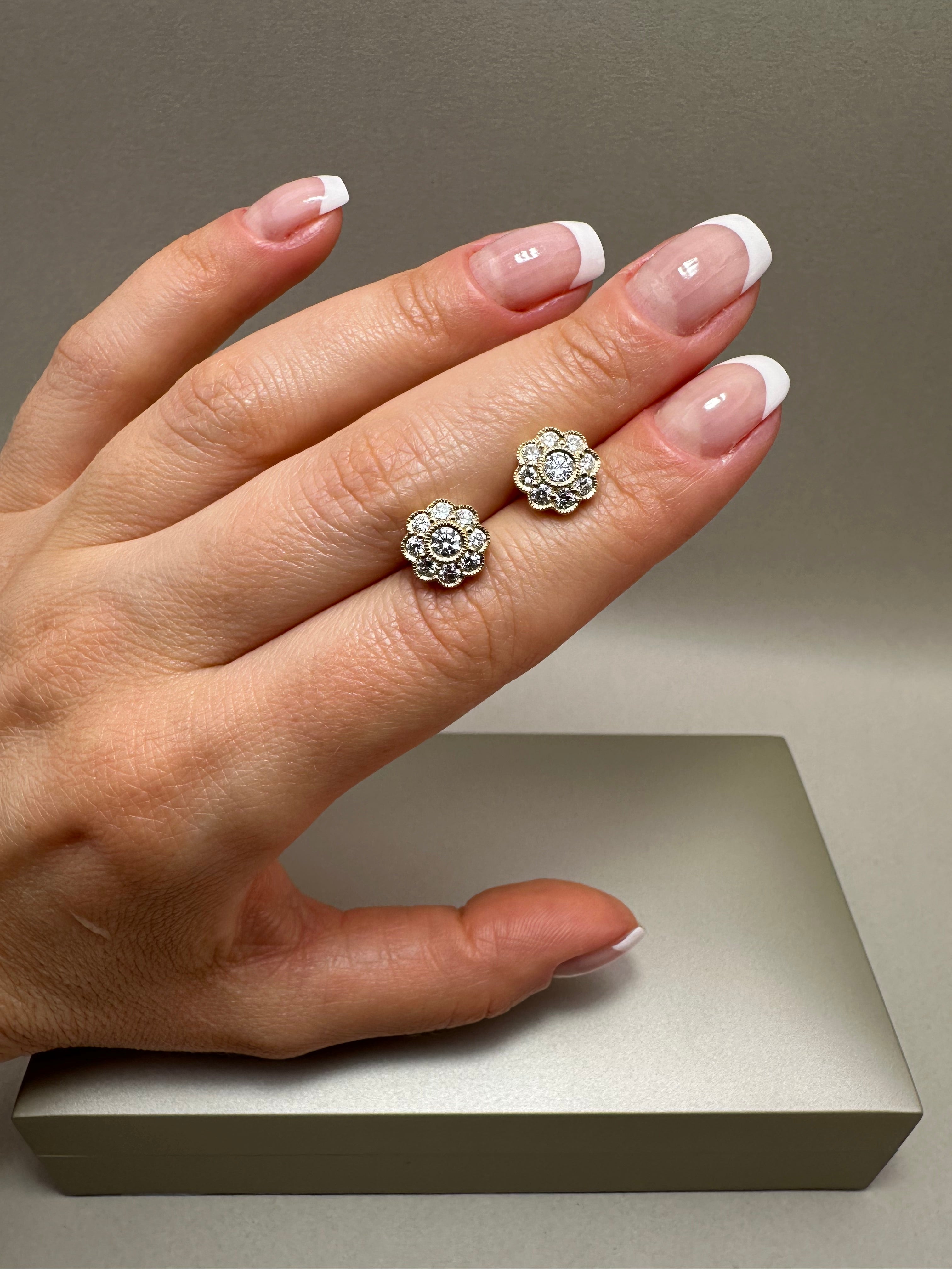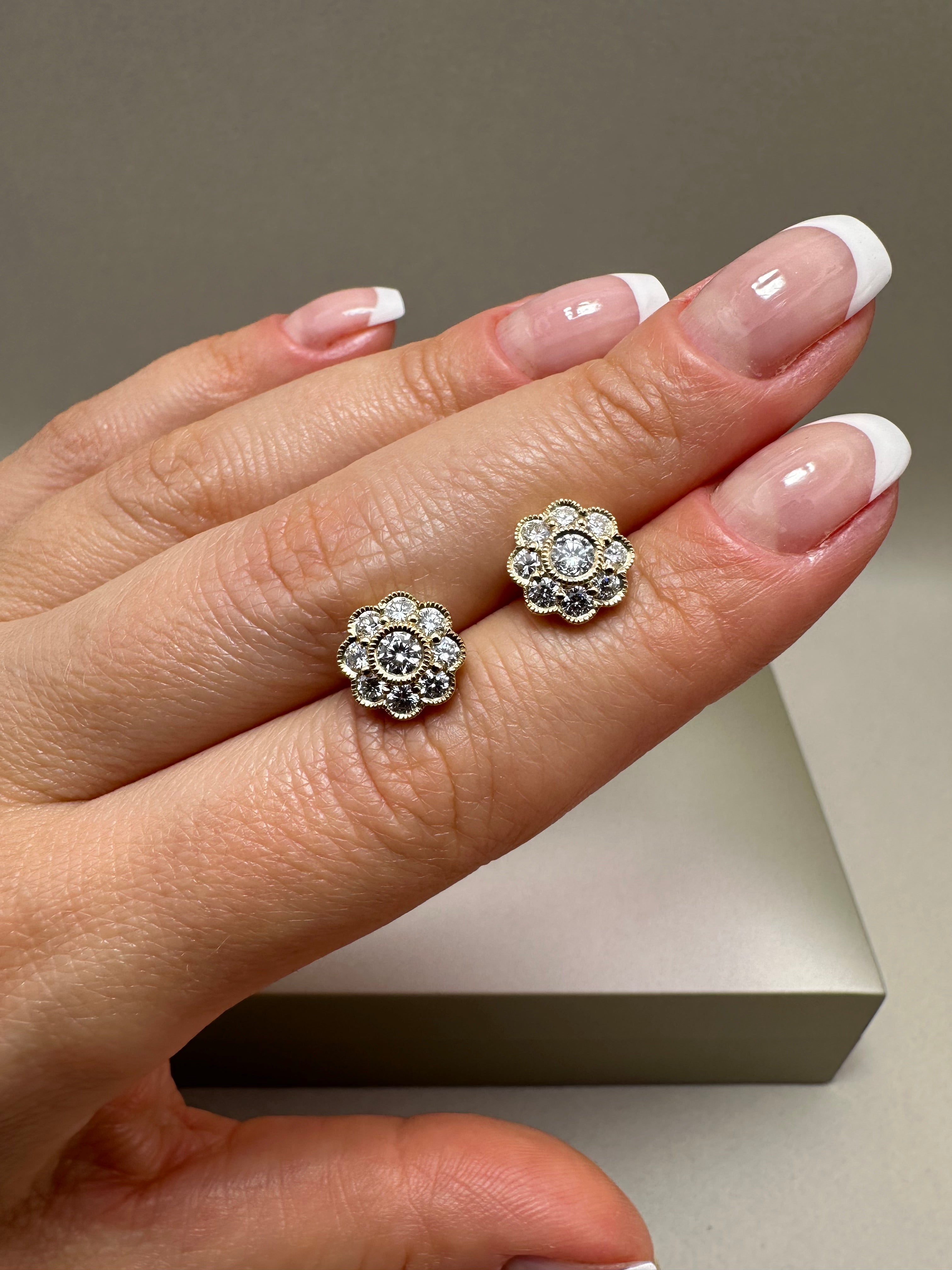 9ct Yellow Gold Daisy Cluster Stud Earrings | 1.01ct Lab-Grown Diamonds, Filigree Finish