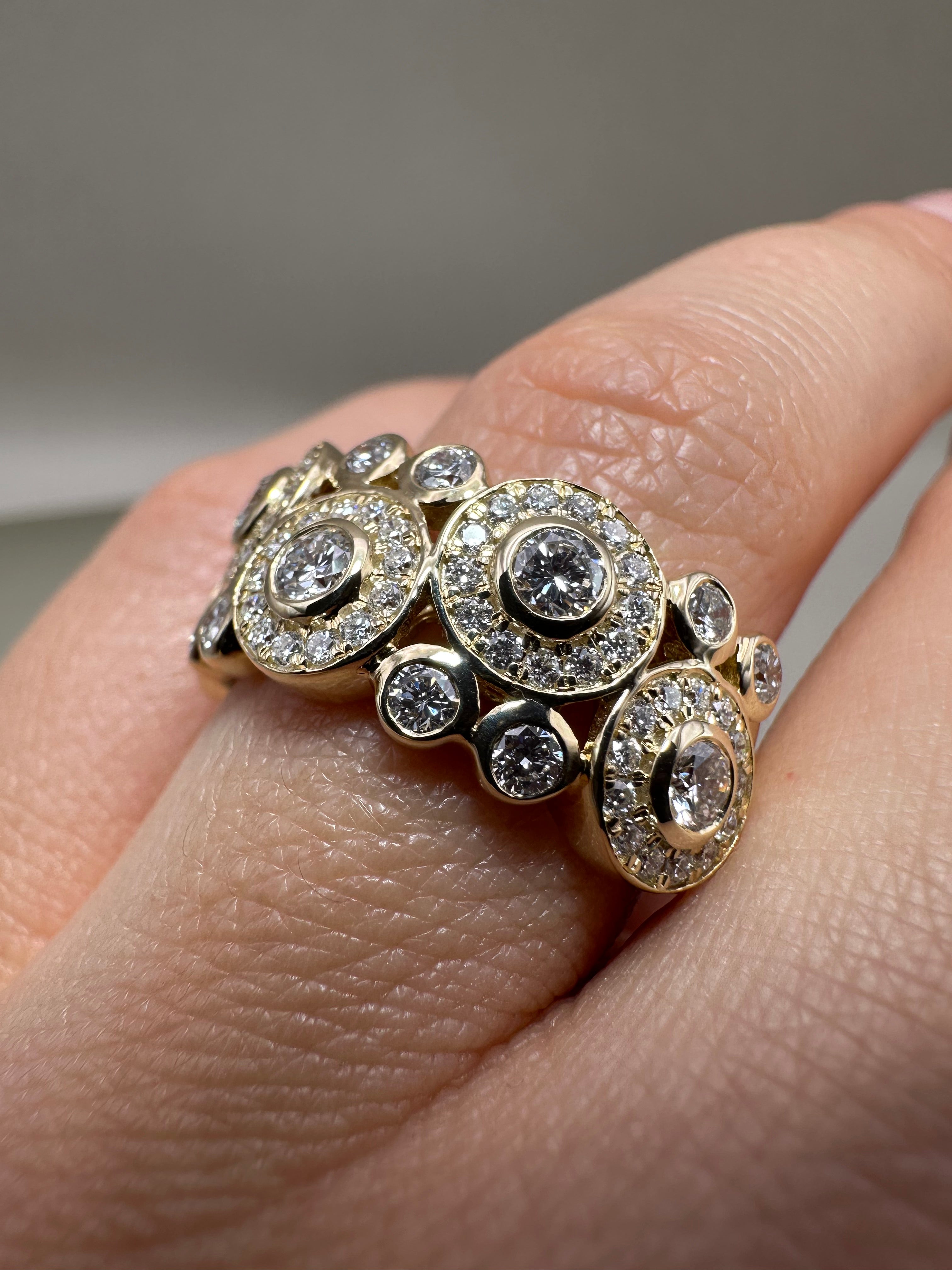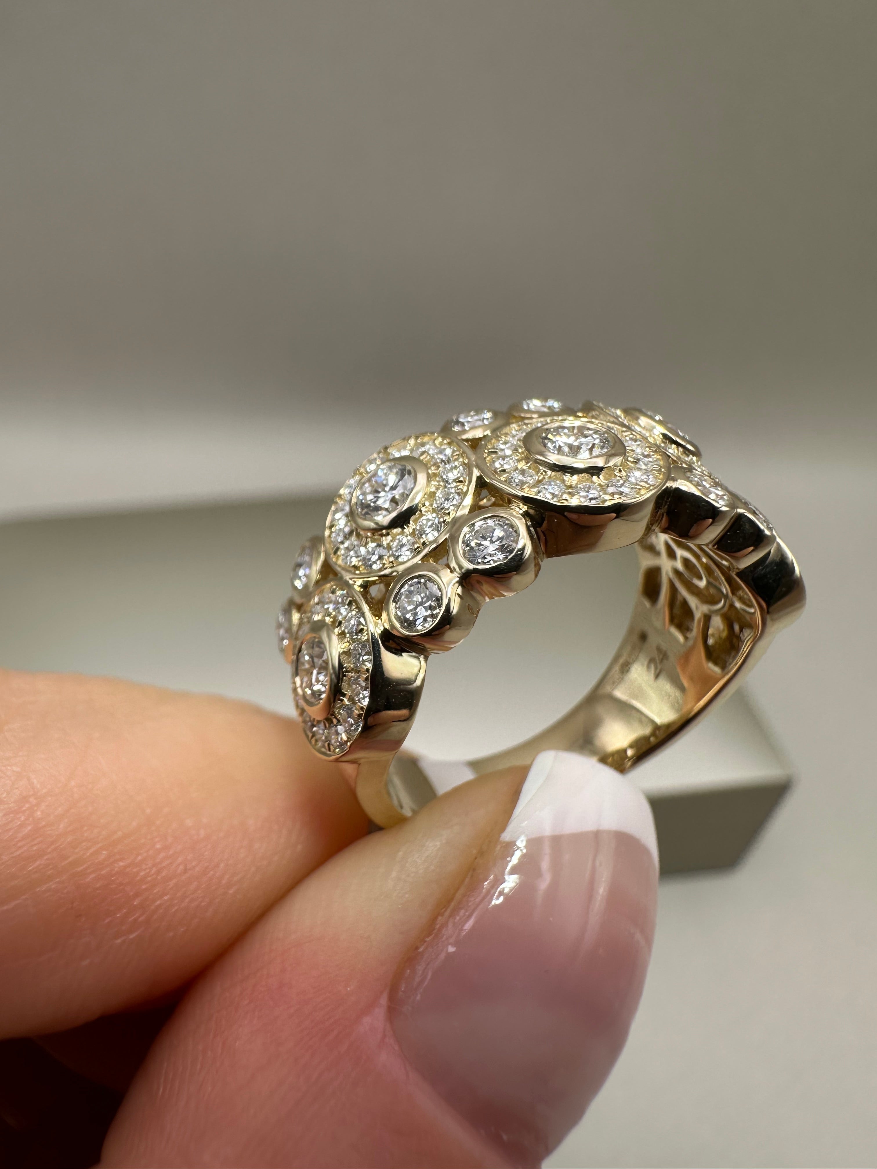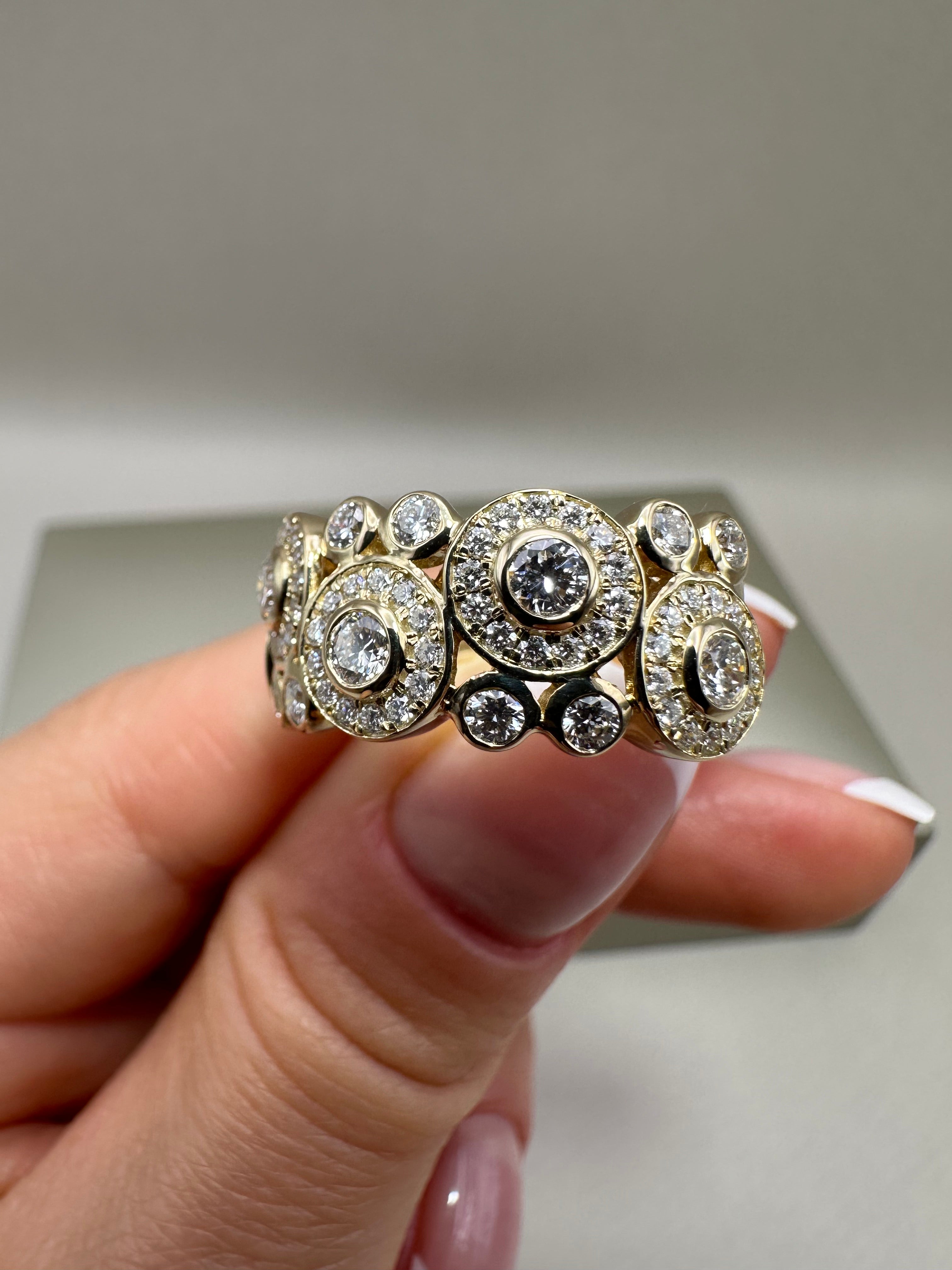 9ct Yellow Gold Fancy Cocktail Ring with 1.37ct Lab-Grown Diamonds | Rubover Setting