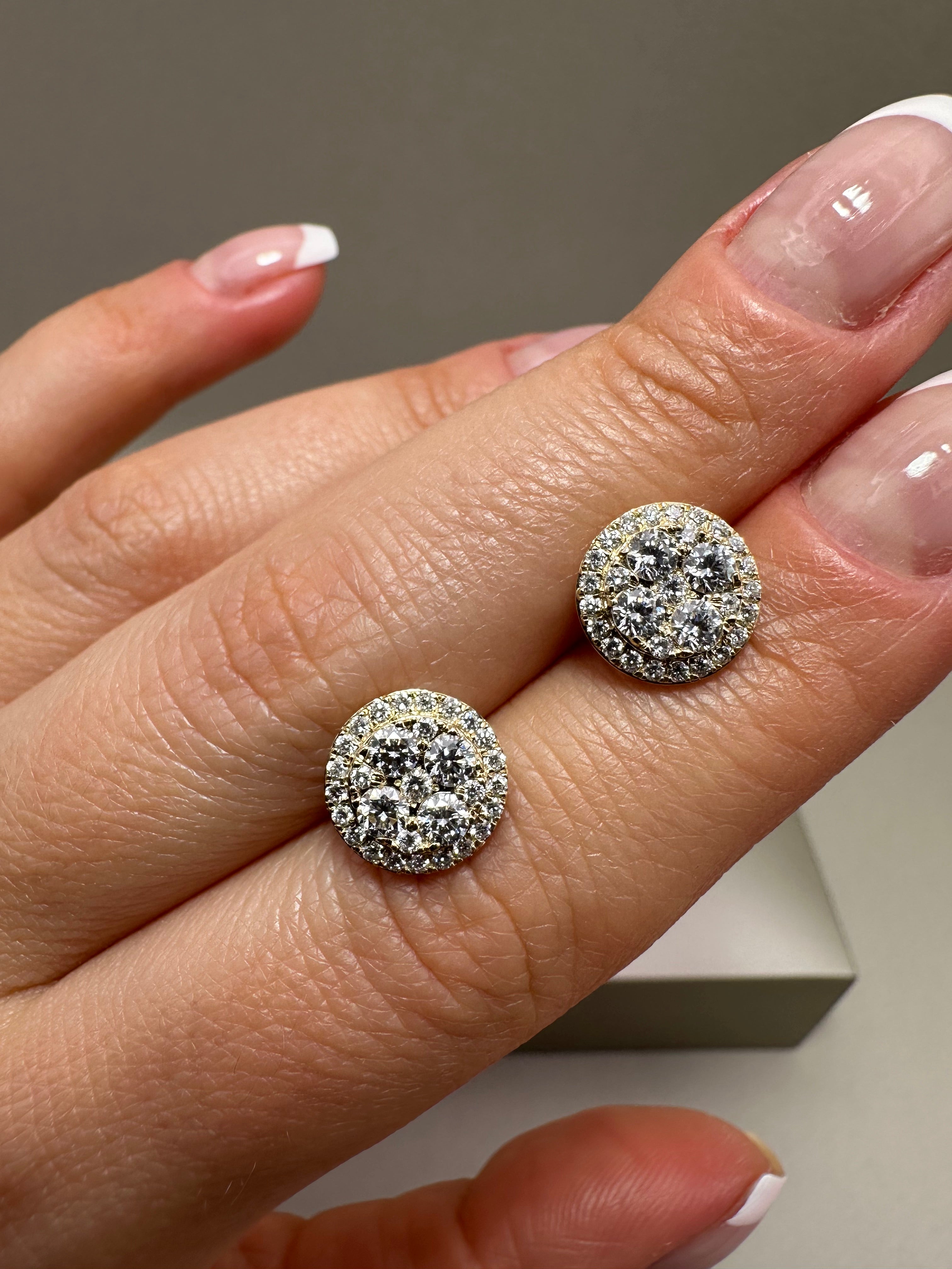 9ct Yellow Gold Halo Stud Earrings | 1.01ct Lab-Grown Diamonds, Illusion Setting
