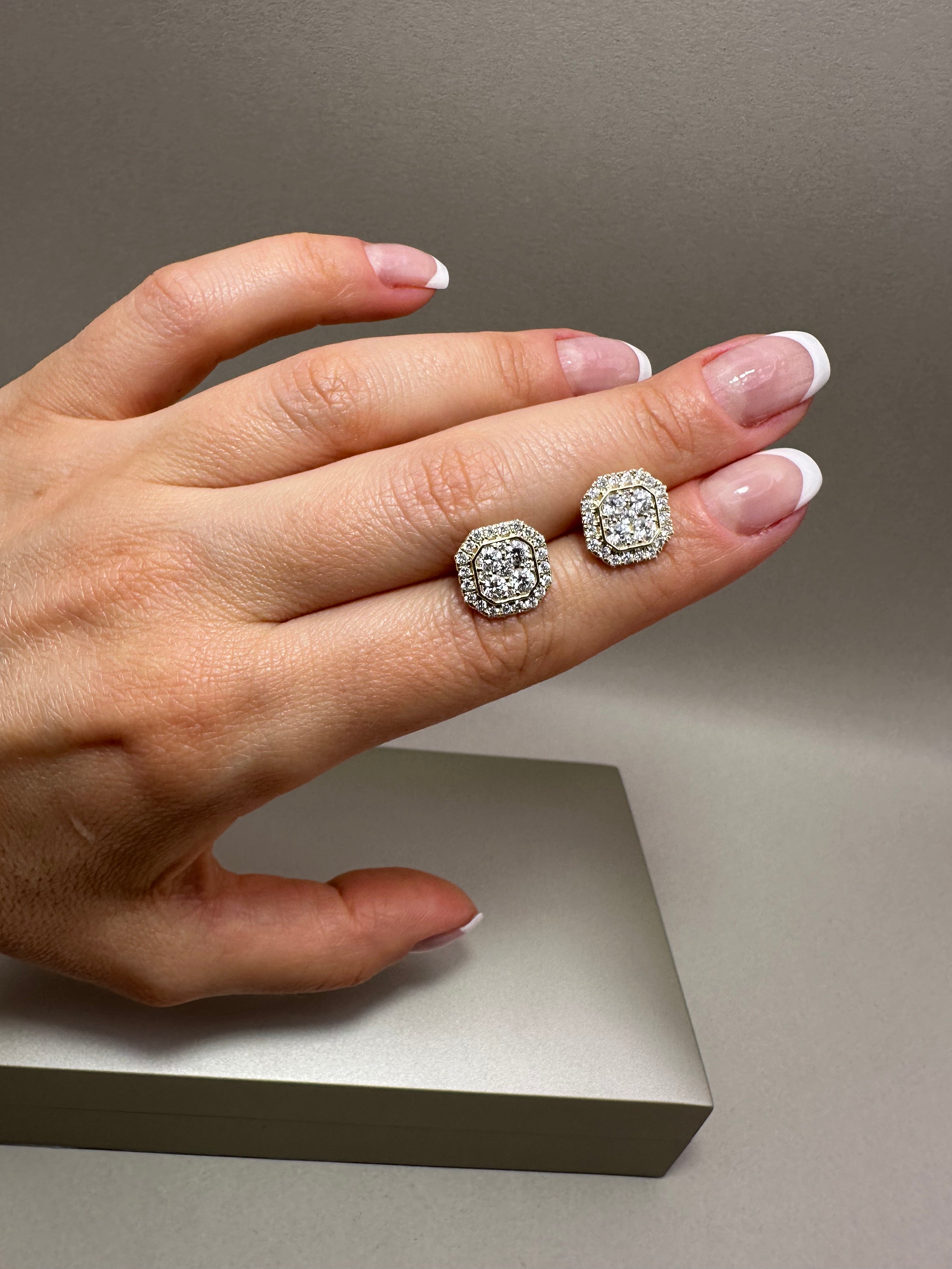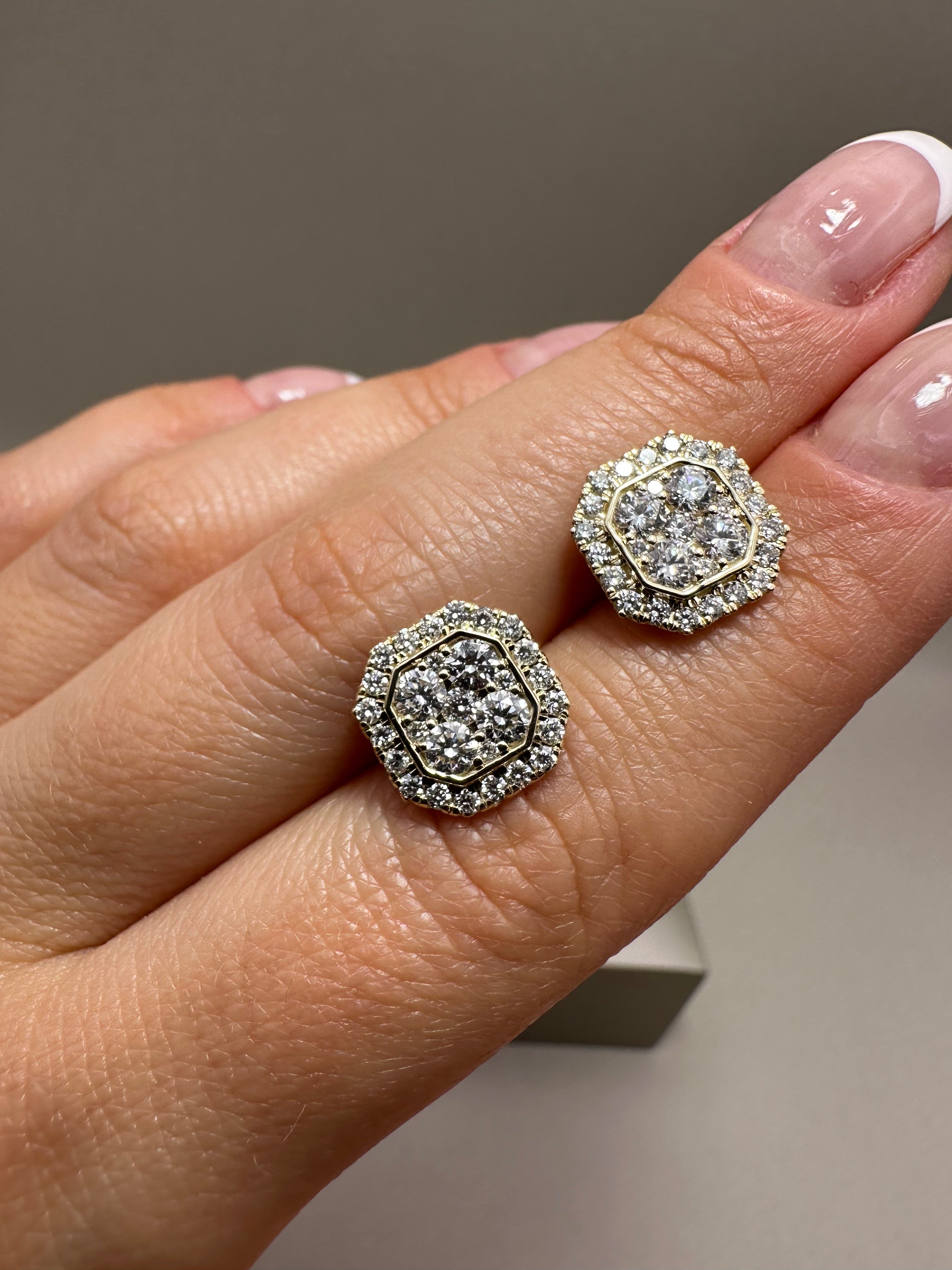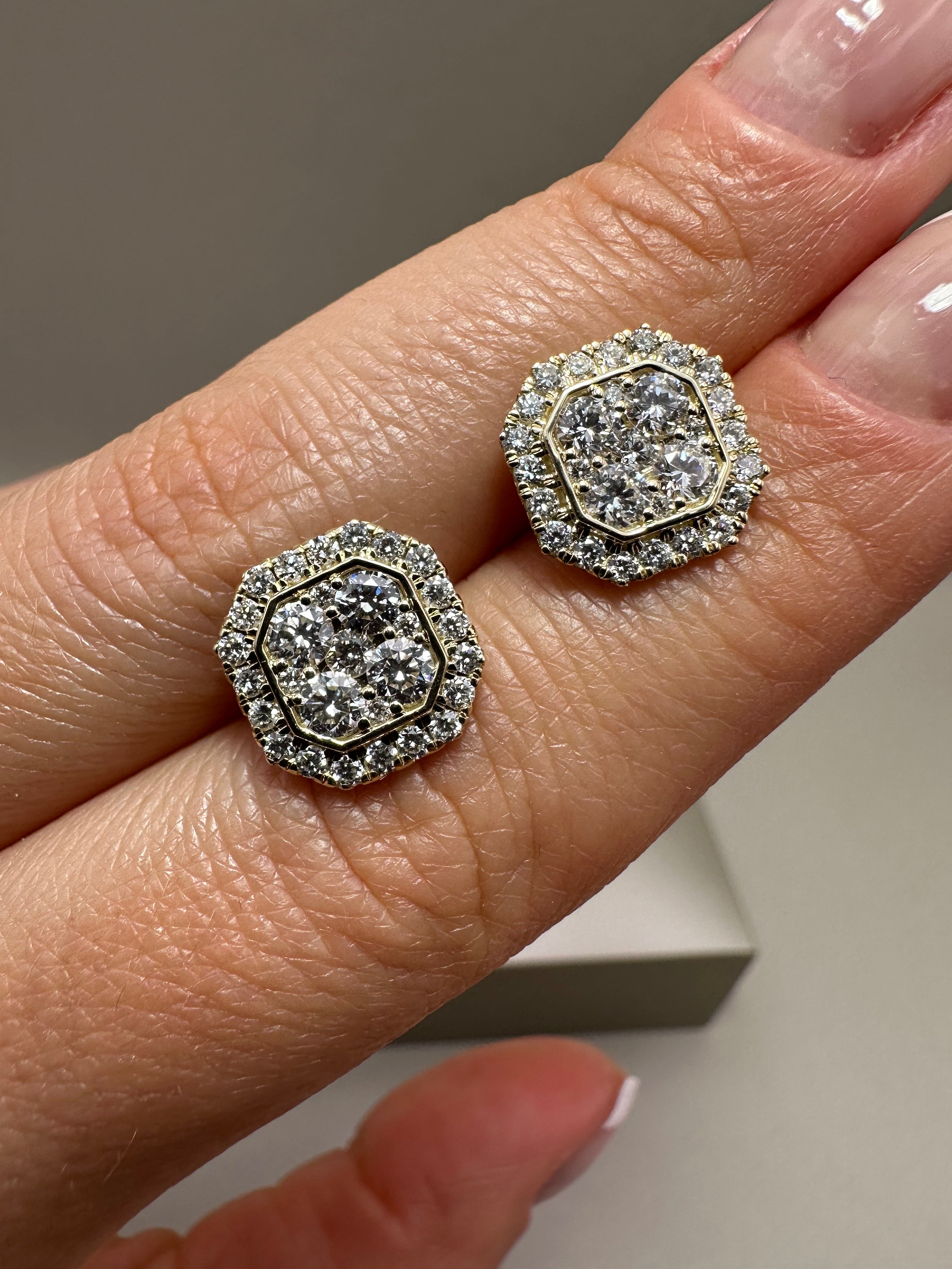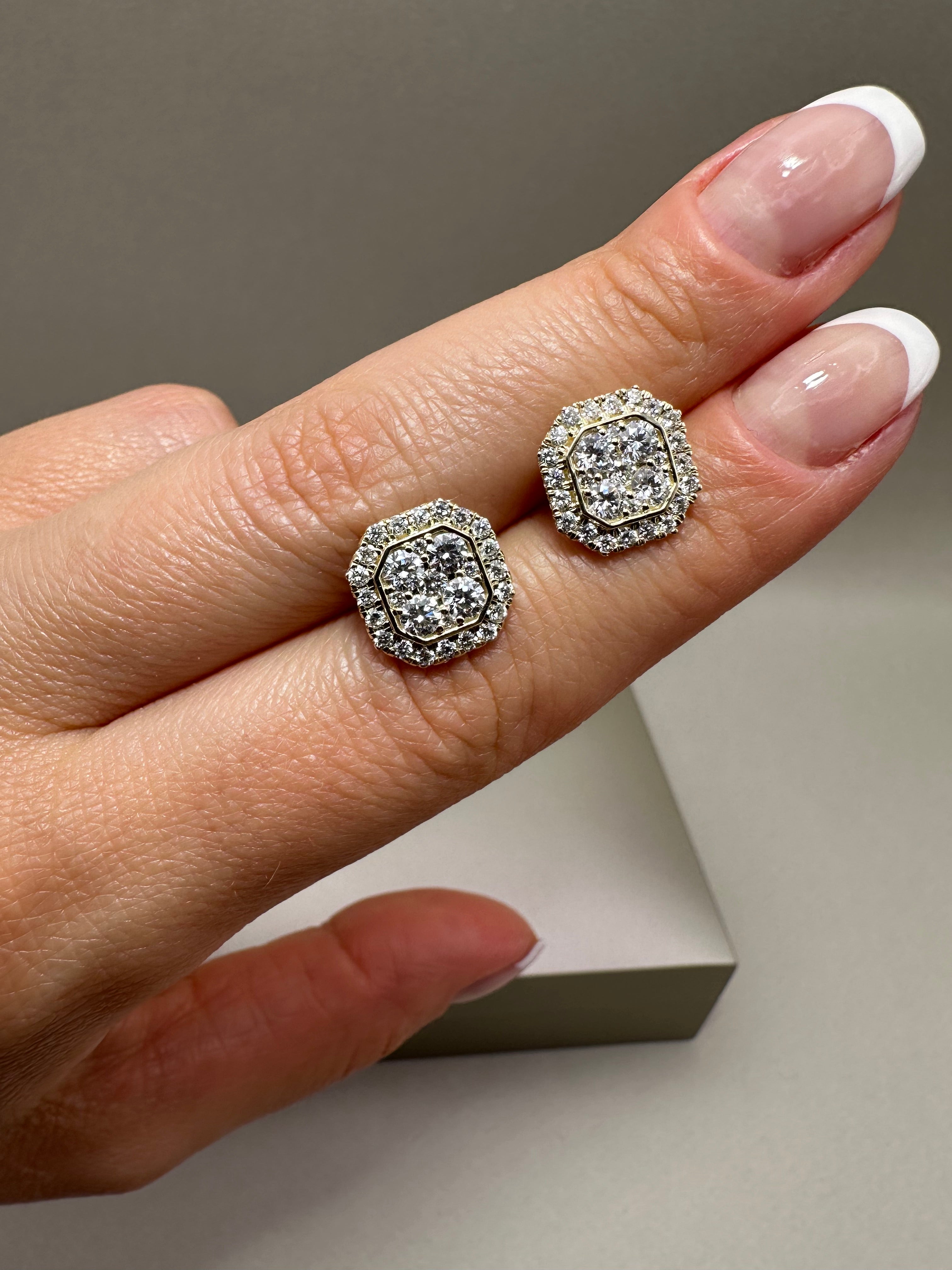 9ct Yellow Gold Halo Stud Earrings | 1.44ct Lab-Grown Diamonds, Illusion Setting