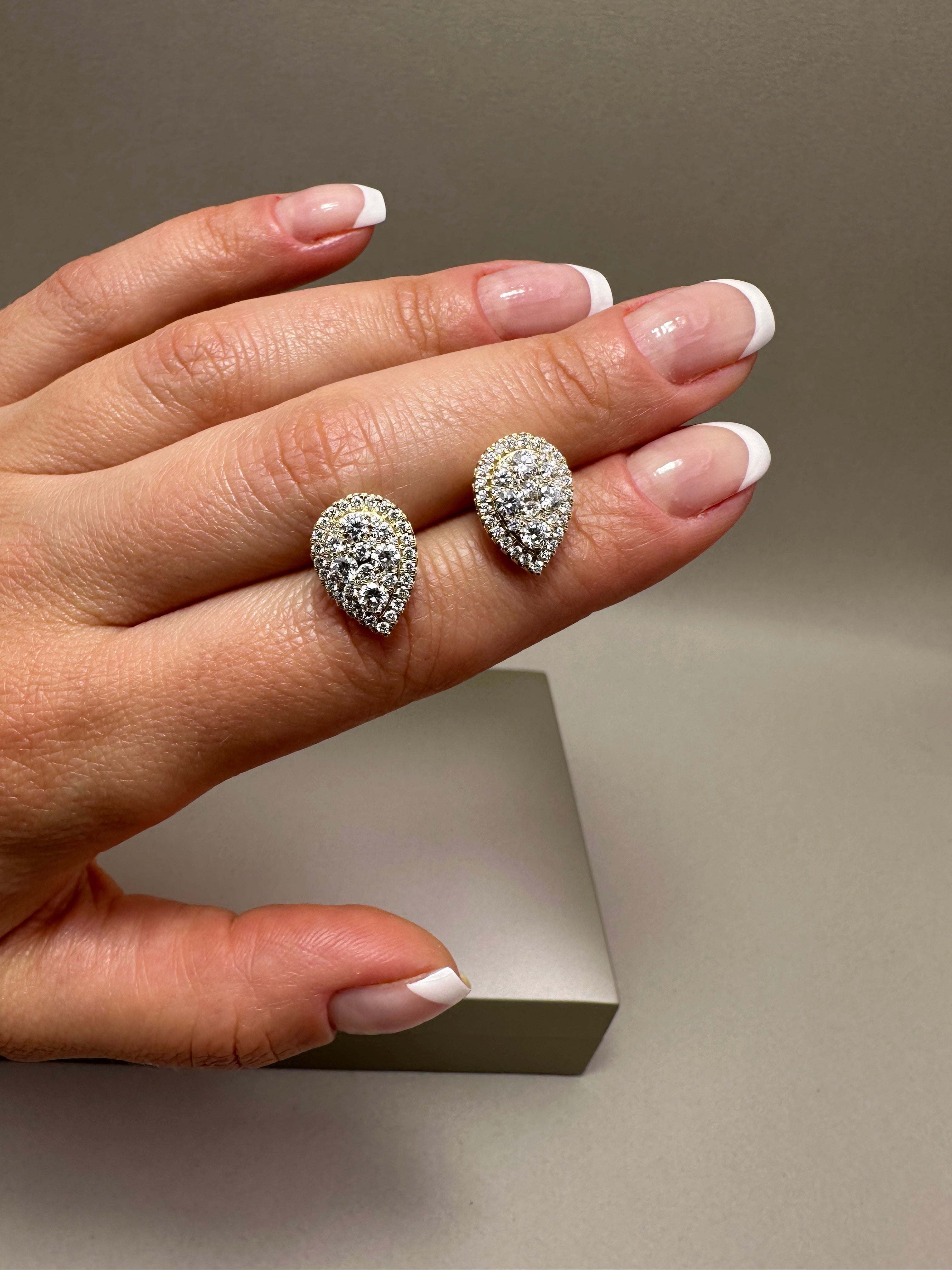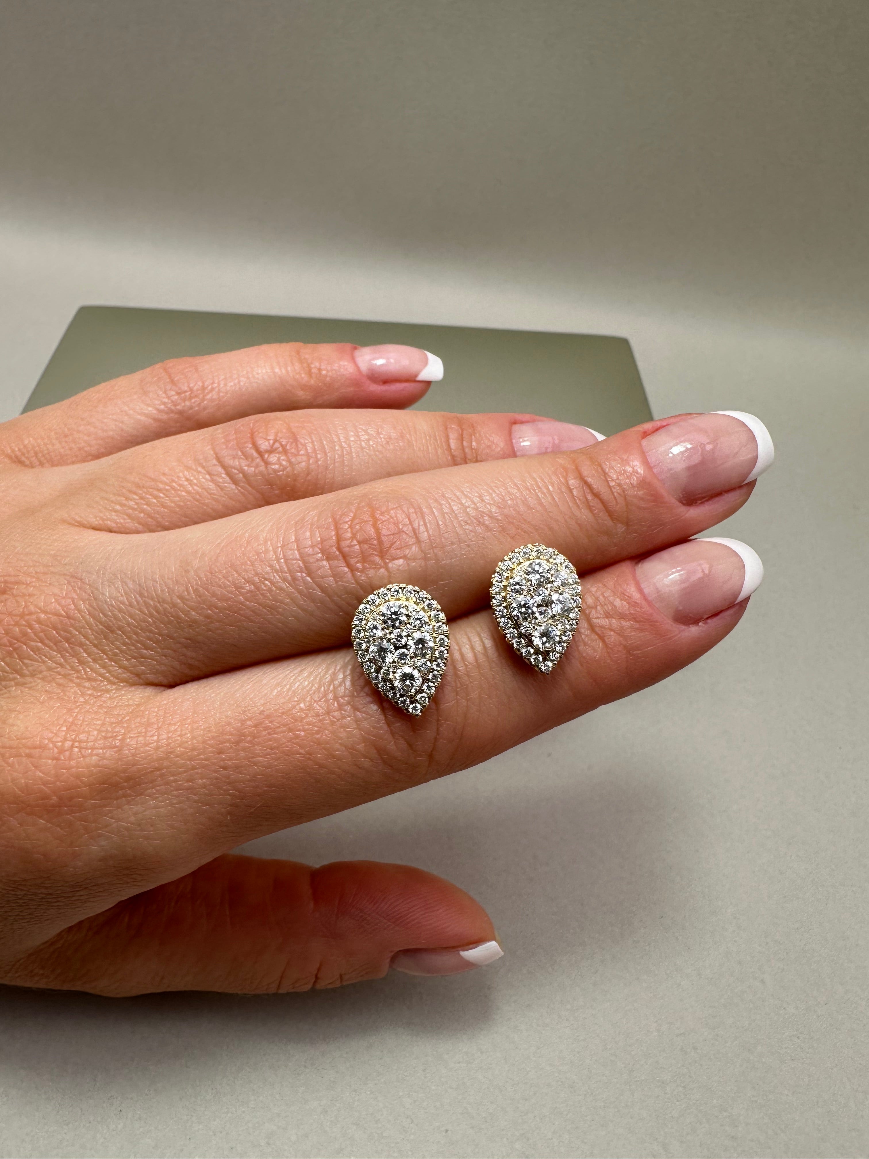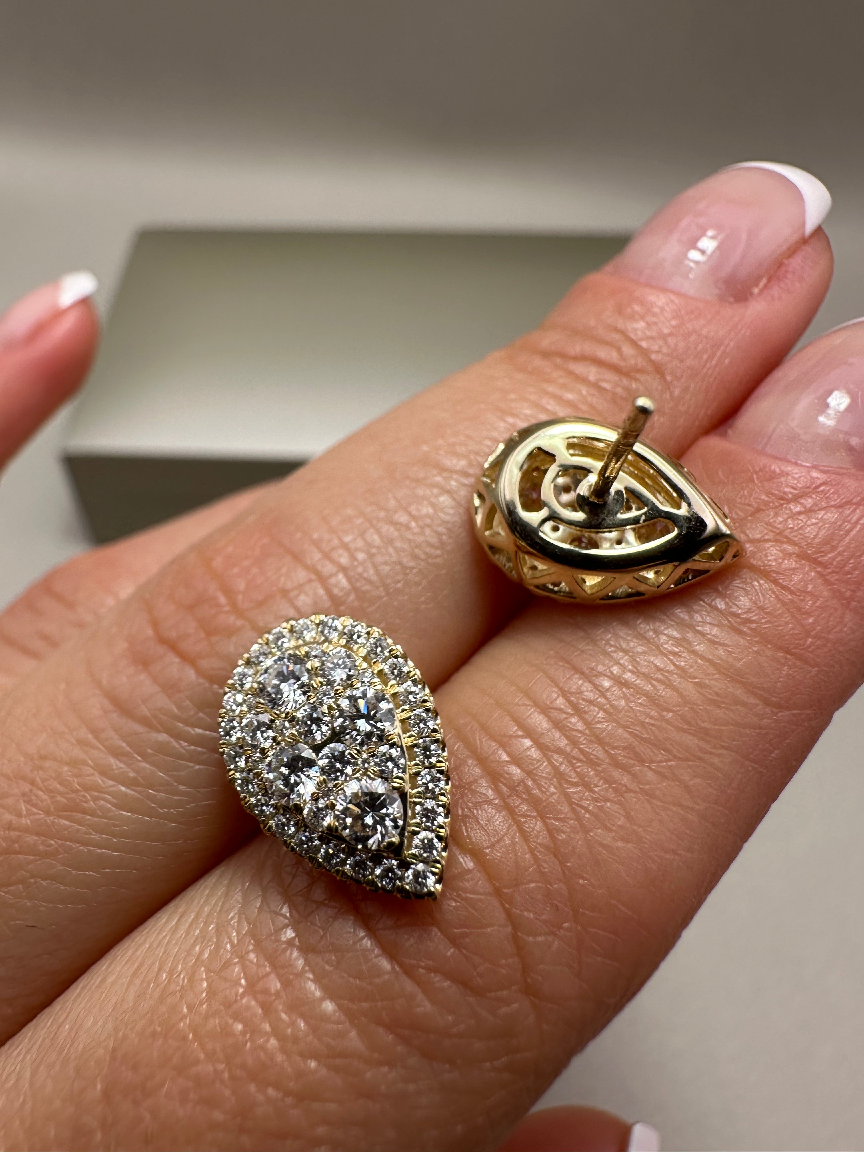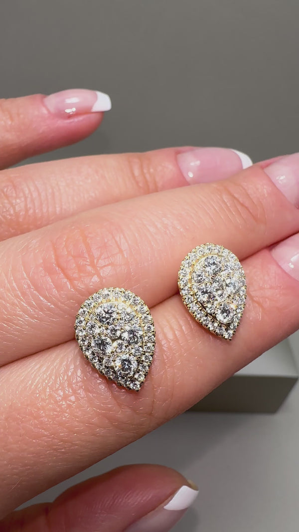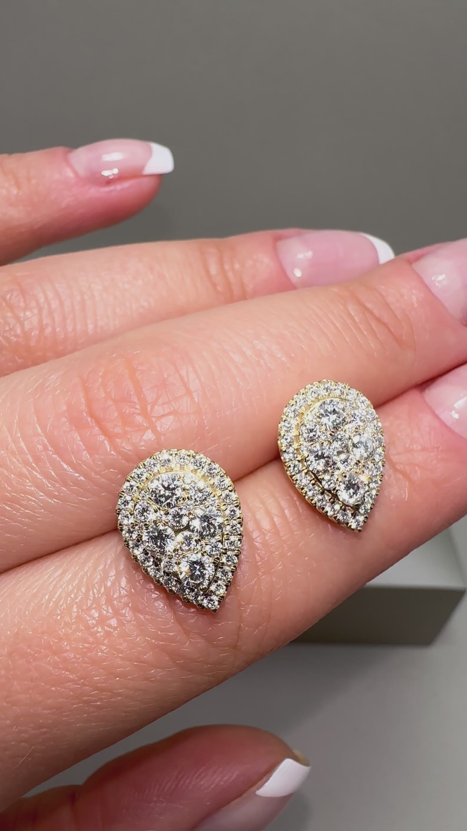 9ct Yellow Gold Pear Halo Diamond Stud Earrings | 1.22ct Lab-Grown Diamonds