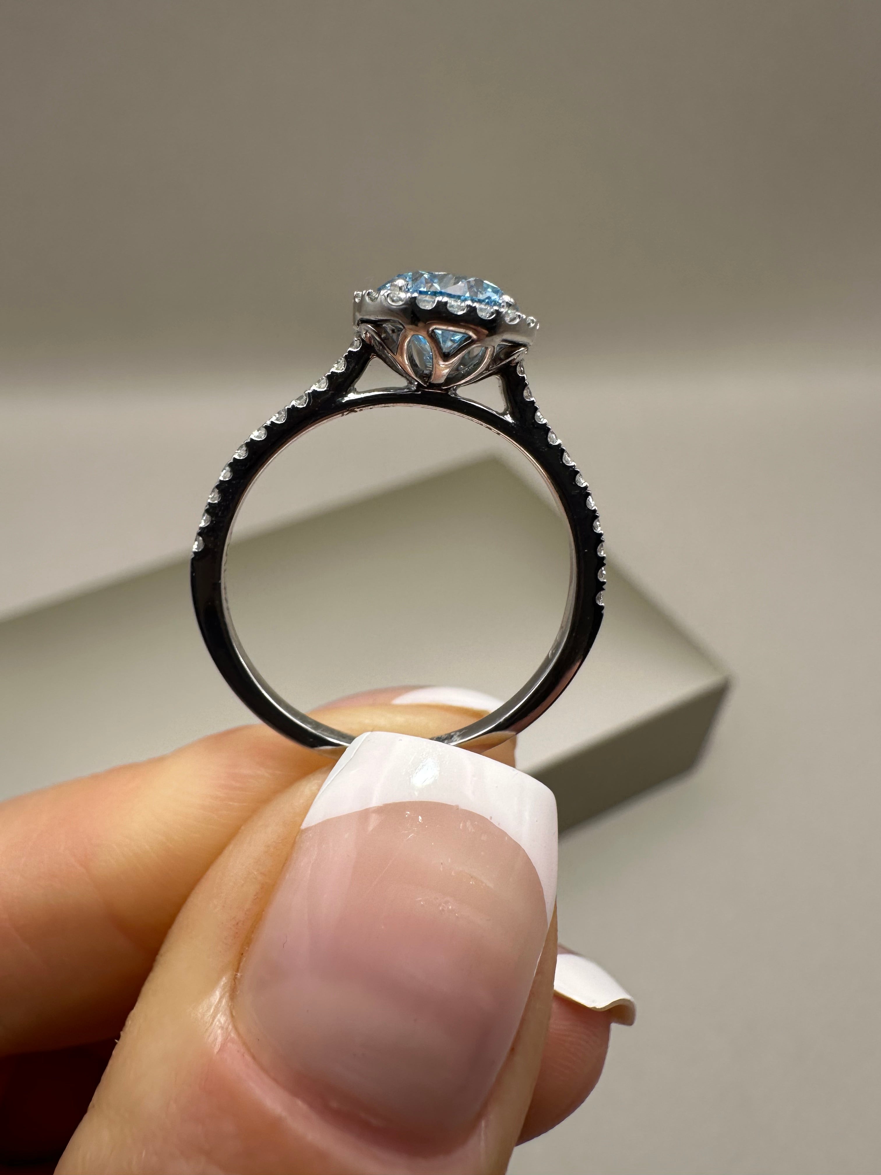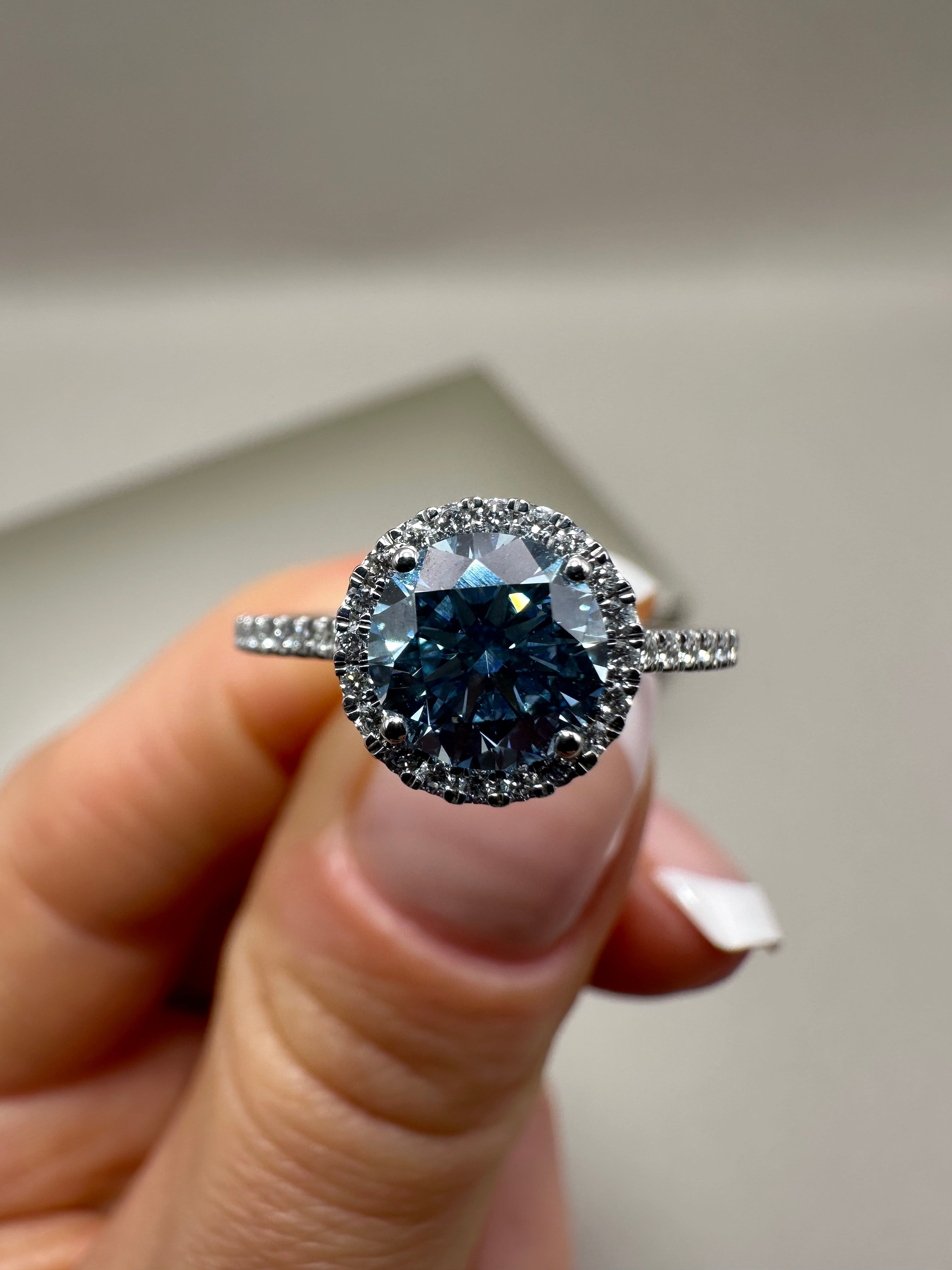 Platinum Lab-Grown Round Blue Diamond Halo Ring – 1.23ct | Sustainable Fine Jewellery