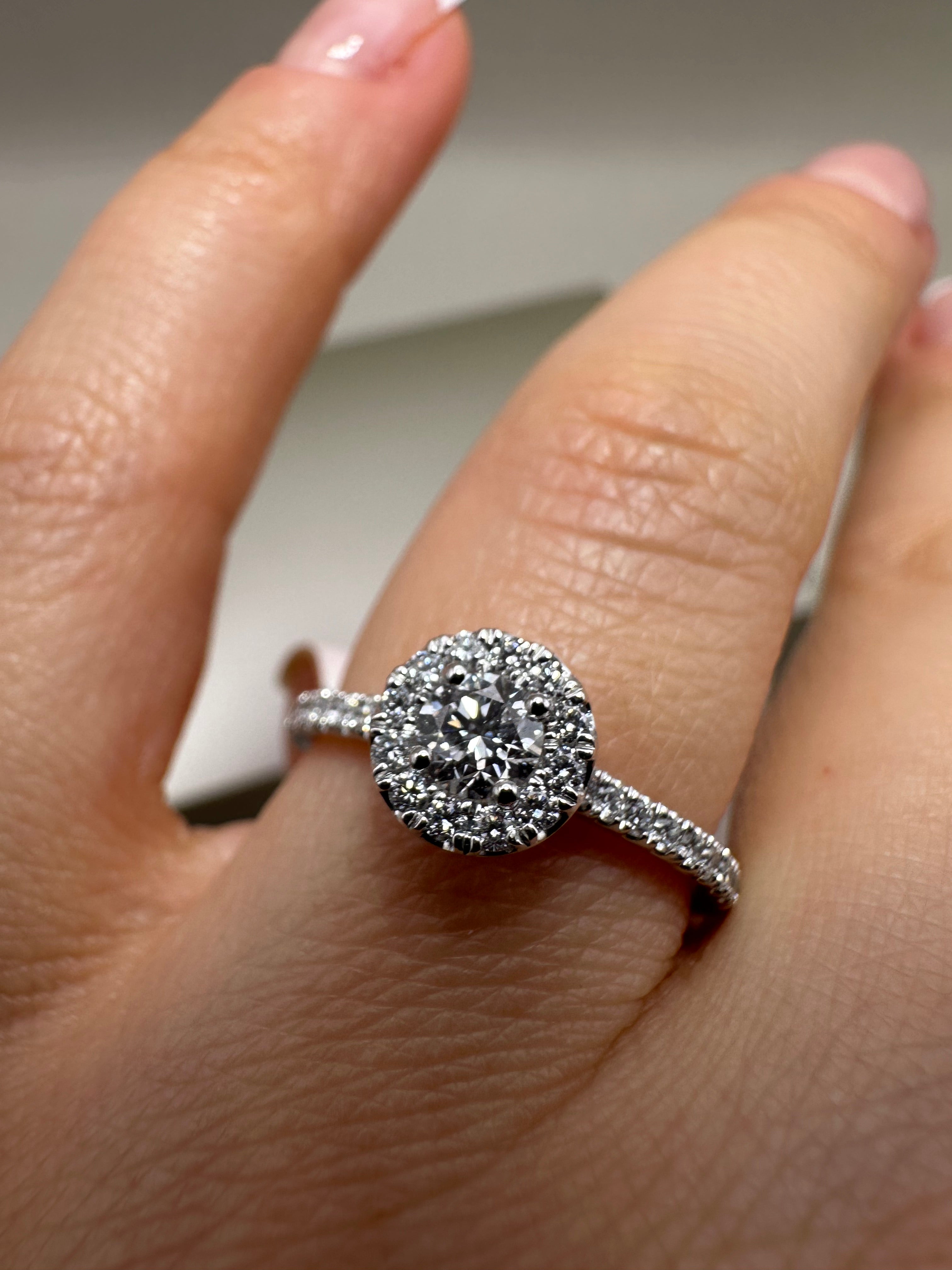 Platinum Lab-Grown Round Brilliant Halo Ring – 0.53ct D-VS Diamonds | Elegant Sustainable Jewellery