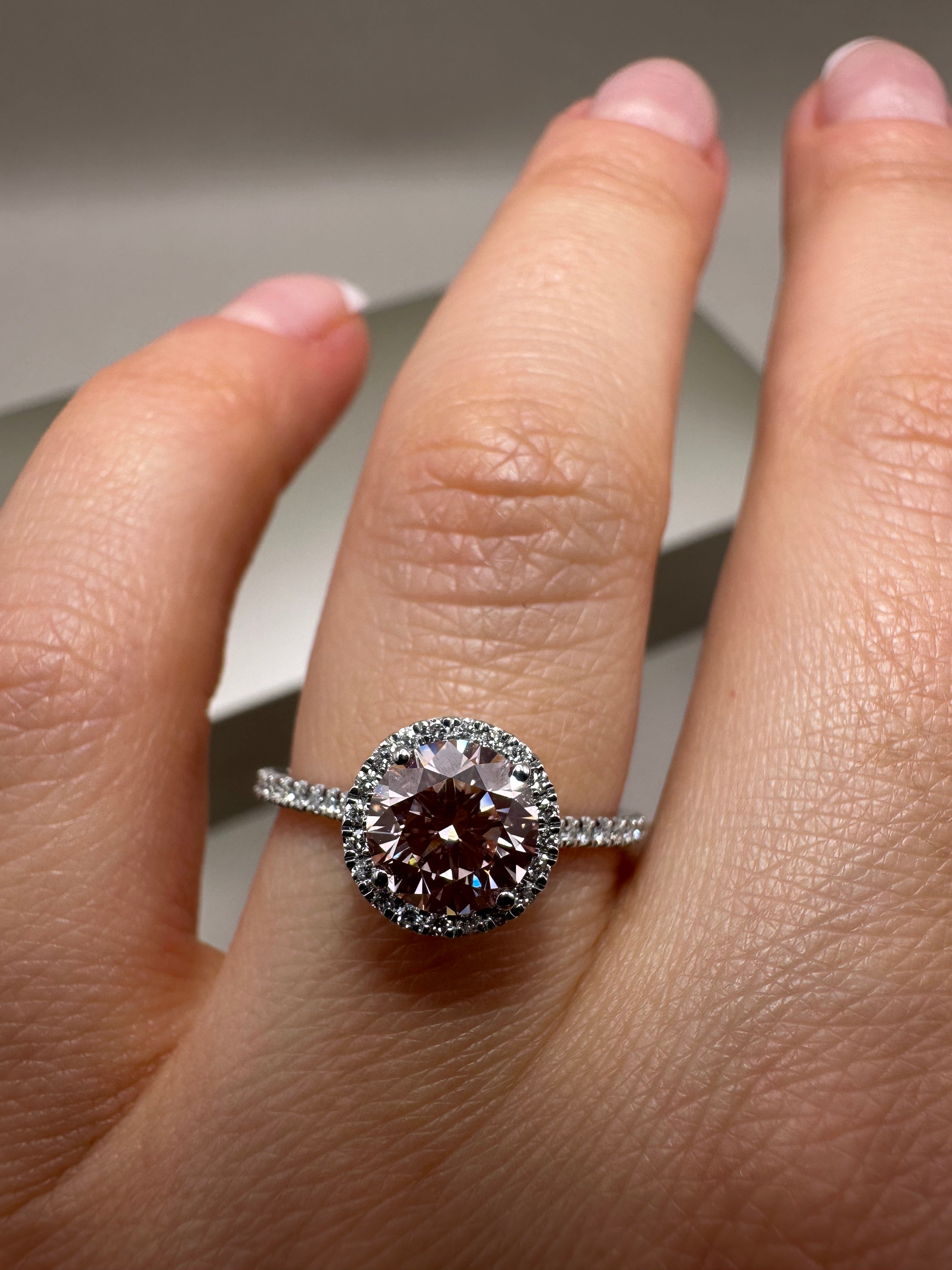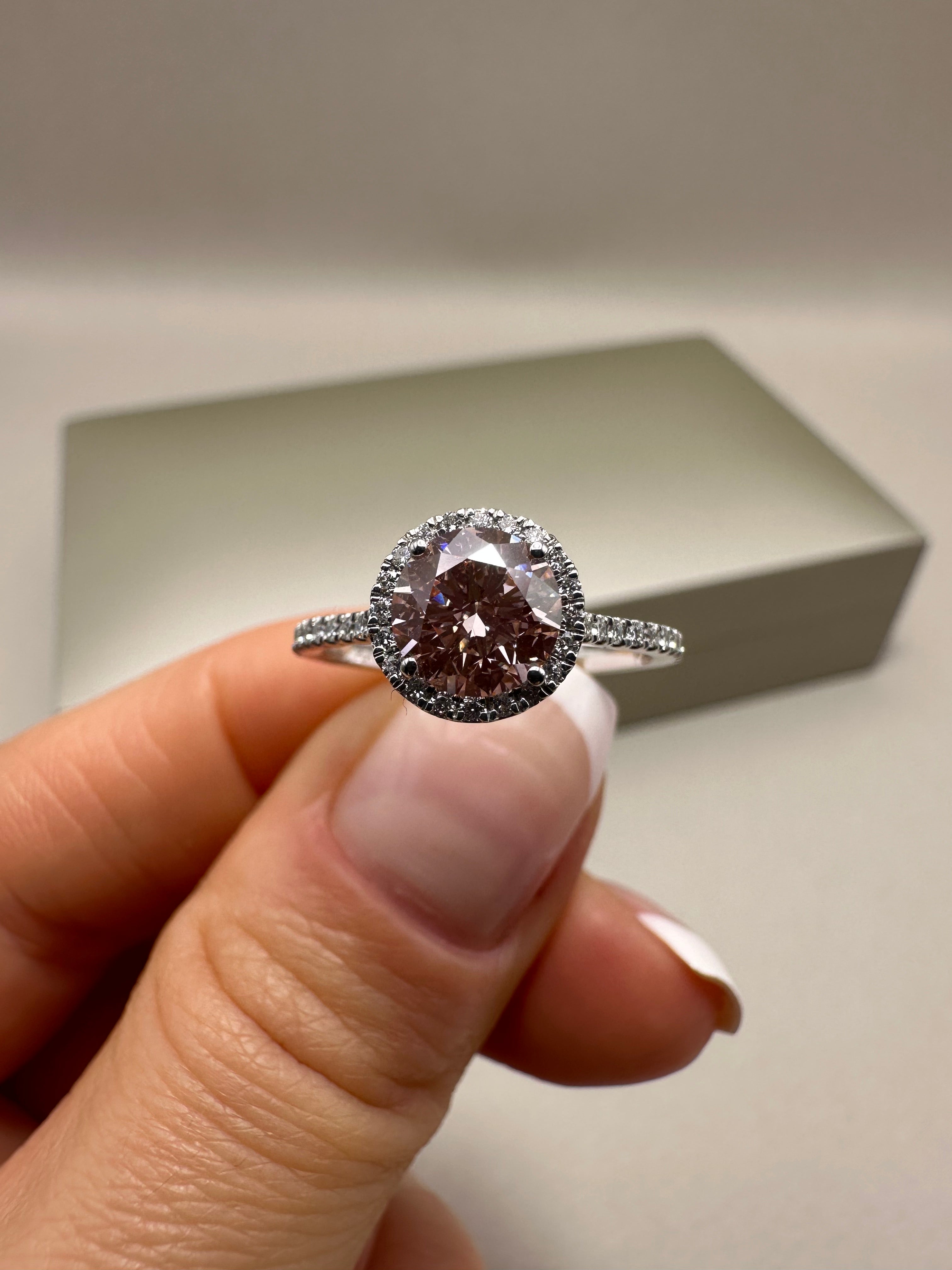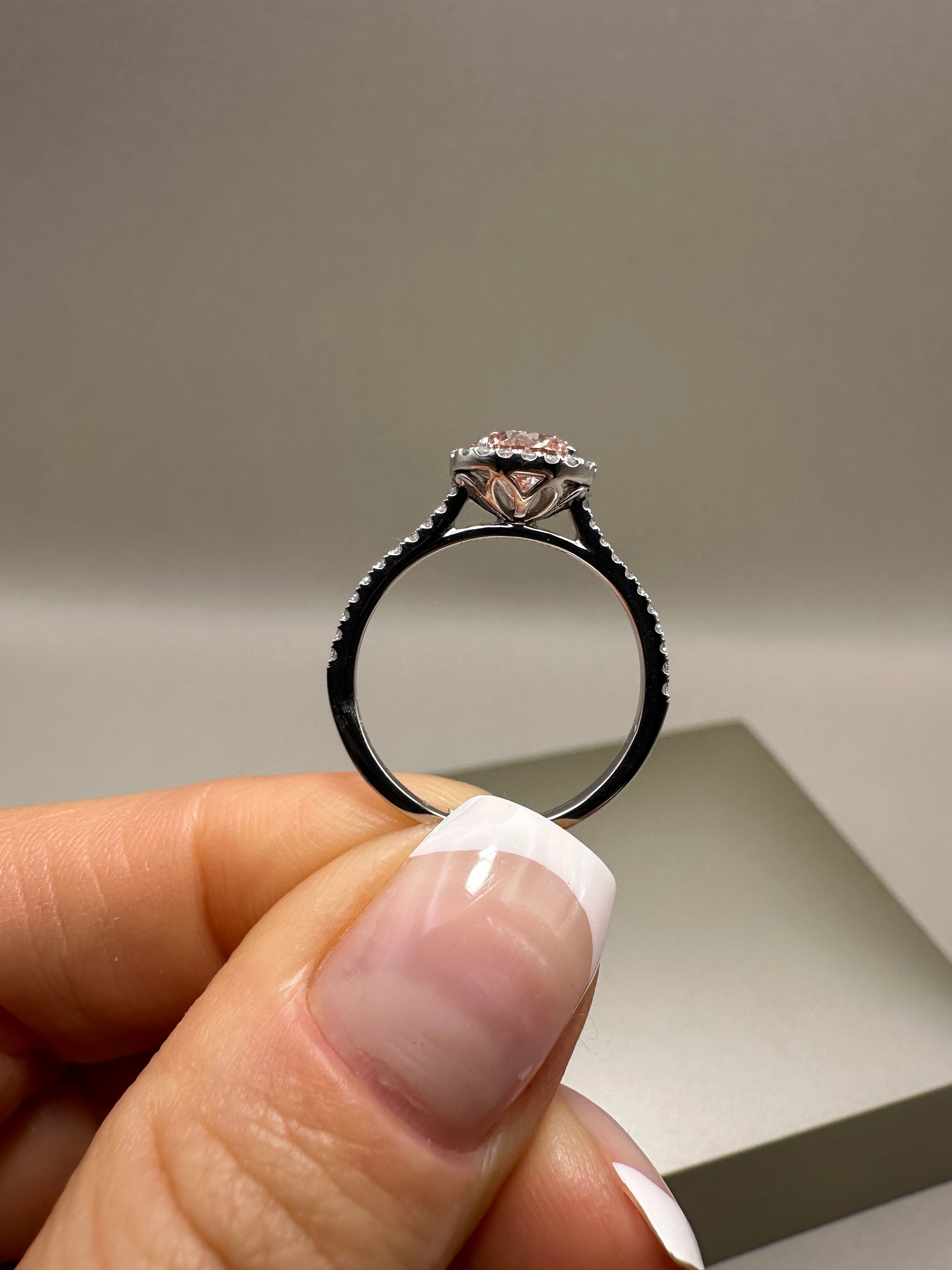 Platinum Lab-Grown Round Pink Diamond Halo Ring – 1.26ct | Ethical Fine Jewellery